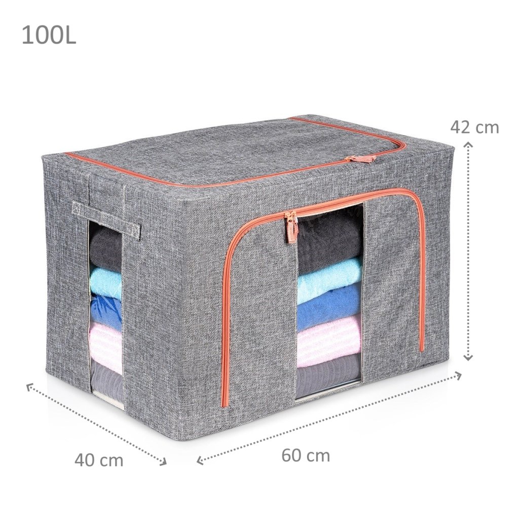 ✔ Pevná konštrukcia – vnútro krytu má kovové rámy, ktoré mu dodávajú stabilný tvar, zabraňujú jeho zloženiu a uľahčujú estetické a usporiadané skladovanie oblečenia a posteľnej bielizne. Možno ho zložiť do plochého stavu.
