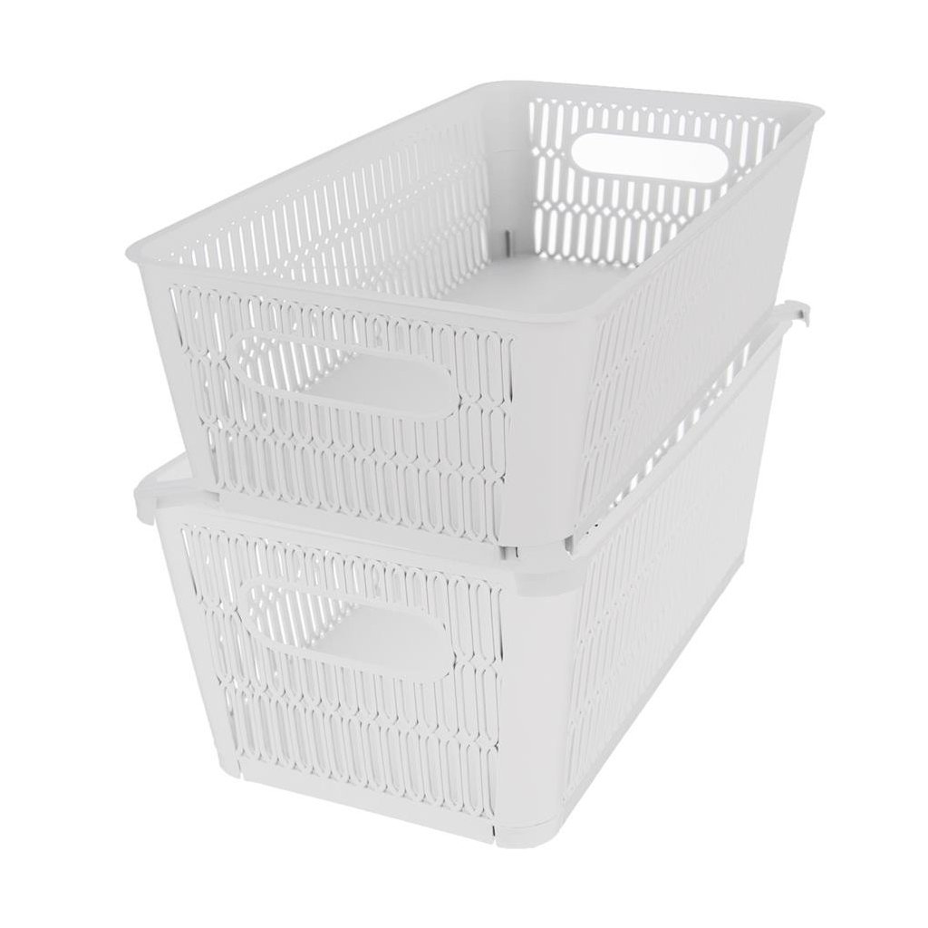 M - Univerzálny košík NESTA, výsuvné klapky na stohovanie, biely 29 x 17 x 12 cm
