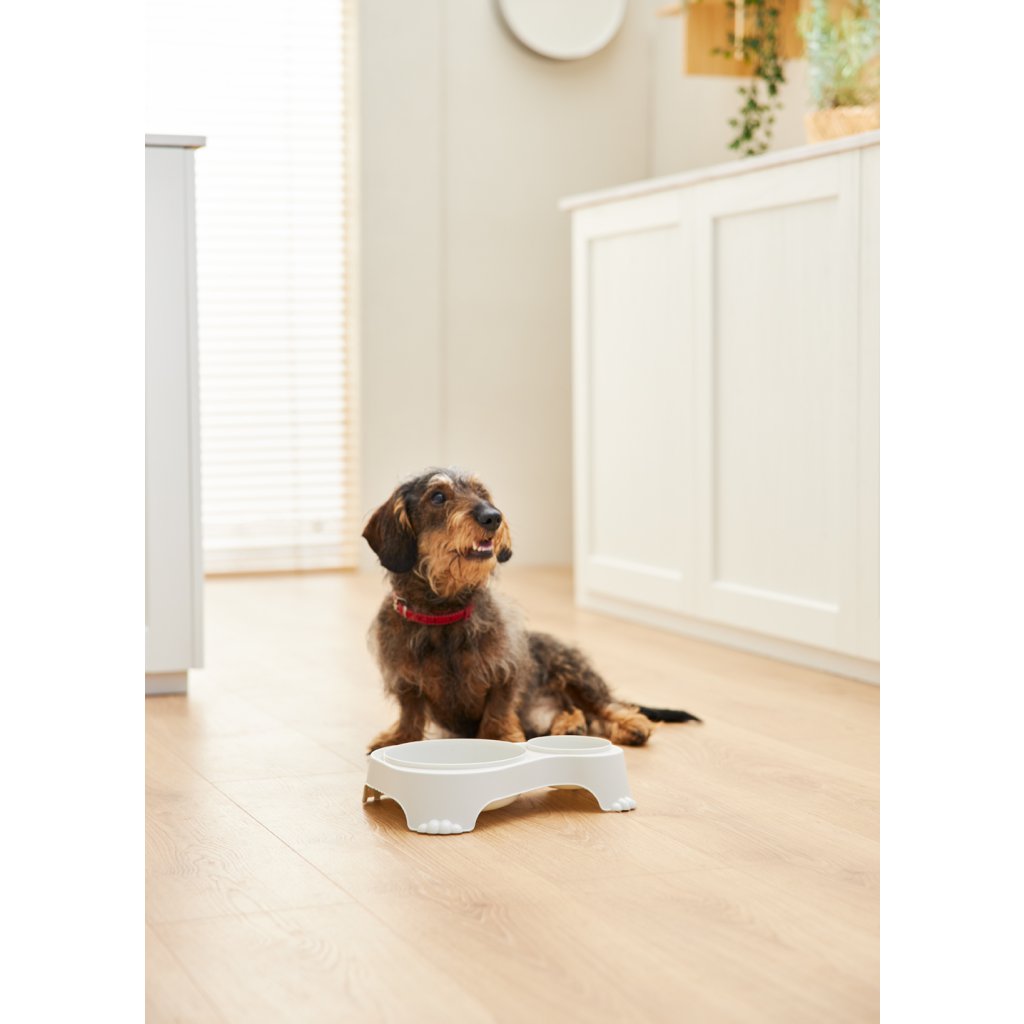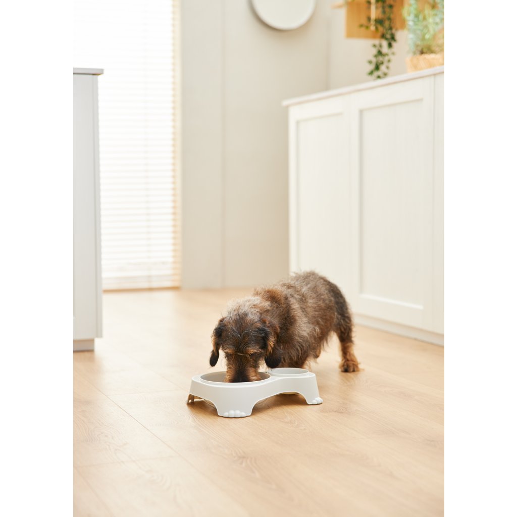 Miska na krmivo a vodu pre psov a mačky, dvojitá s vekom, SALLY - krémová