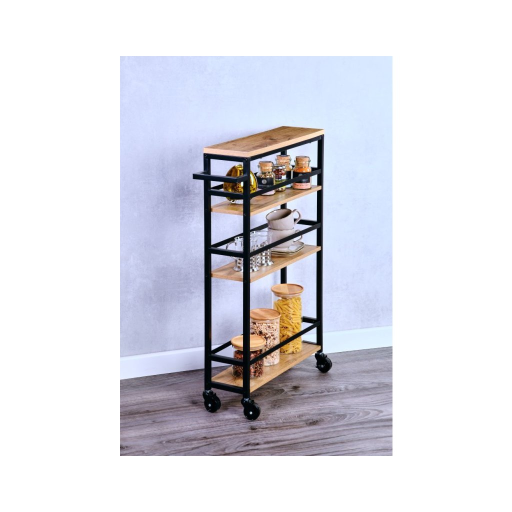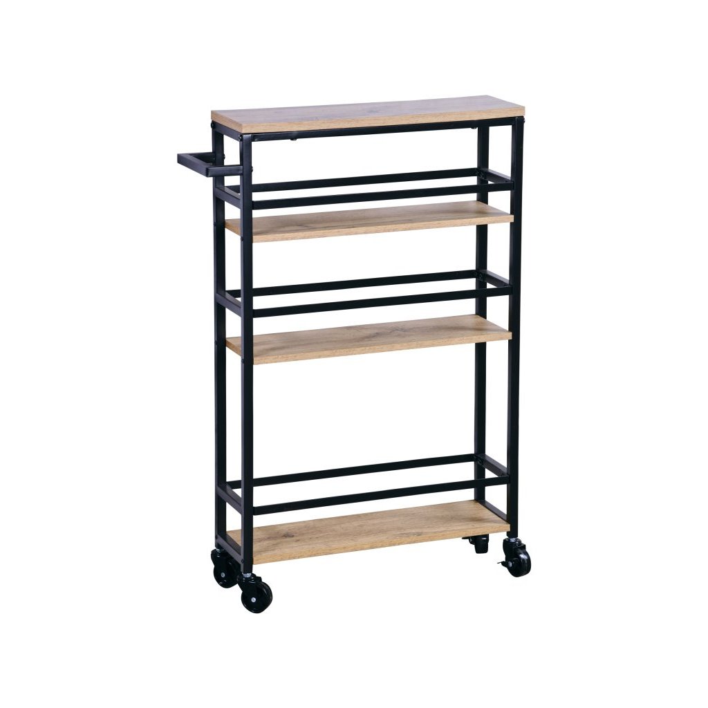 Mobilný regál, výsuvná polička, vozík, dub/čierny kov