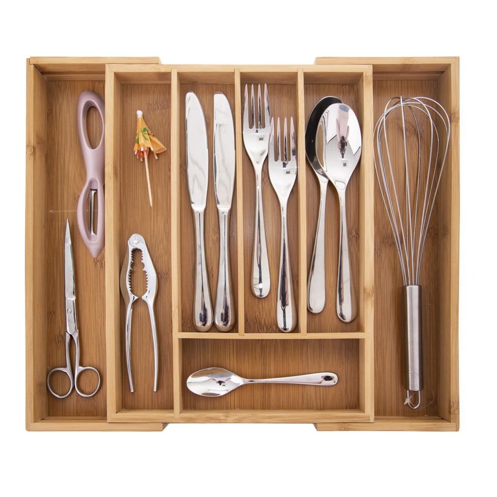 💡 TIP: Ideálny nielen na príbory, ale aj na kuchynské náčinie, nože alebo varešky! Udržujte si vo svojej kuchyni poriadok a eleganciu s týmto bambusovým organizérom. 🍽✨