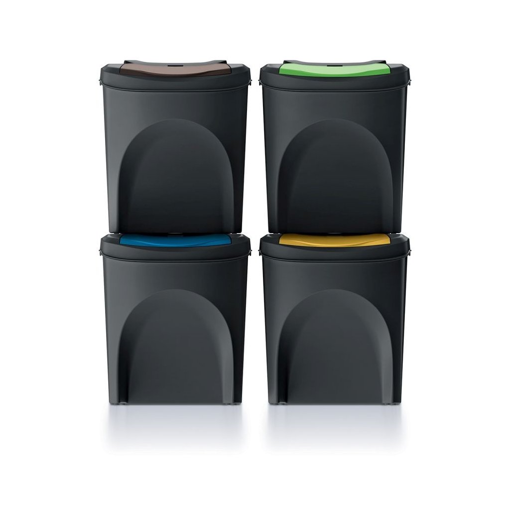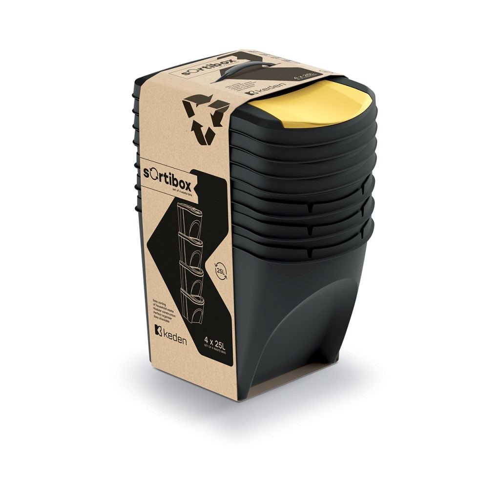 Odpadkový kôš na triedenie odpadu, 4ks x 25l SORTIBOX XL - čierne