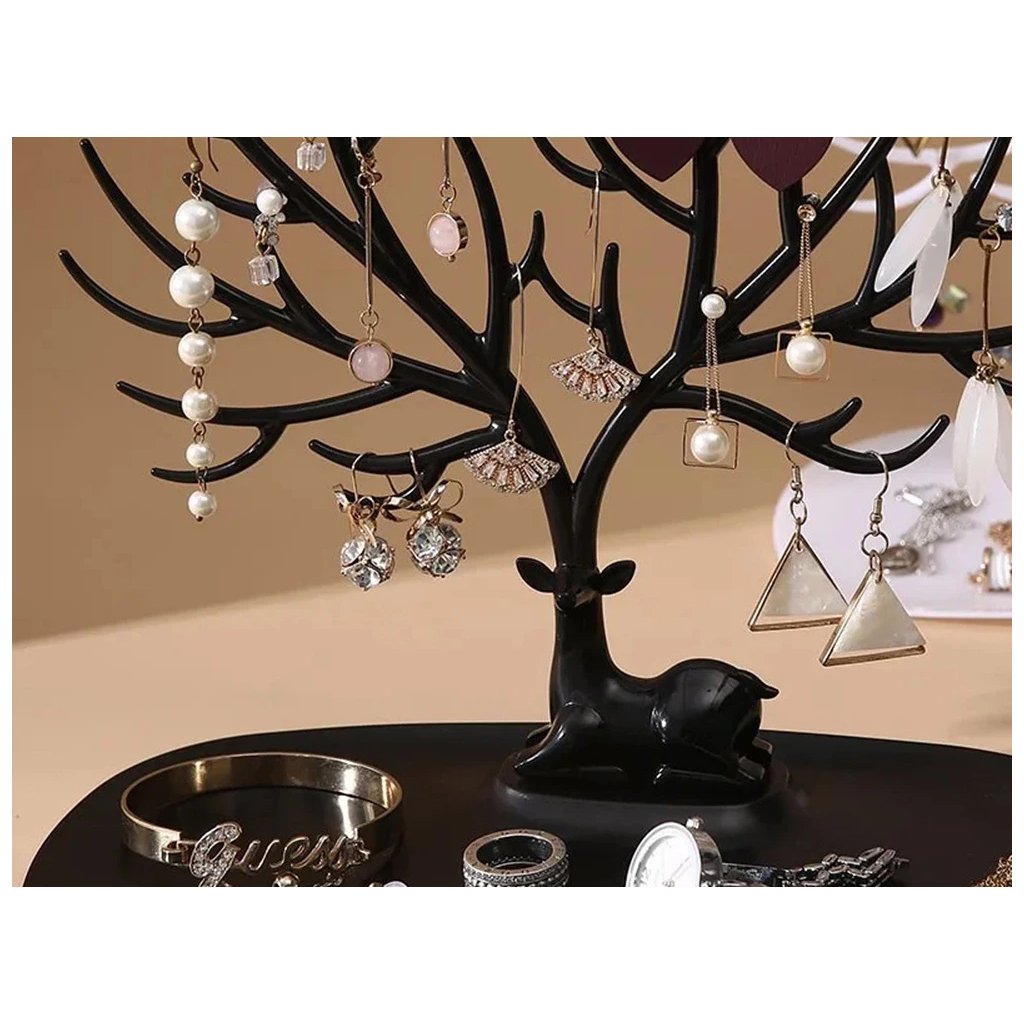 Hľadáte štýlový a praktický spôsob, ako mať svoje šperky prehľadne usporiadané a vždy po ruke? Tento stojan na šperky v tvare jelena so stromčekovou korunou je funkčný organizér aj elegantná dekorácia, ktorá krásne doplní každý interiér.