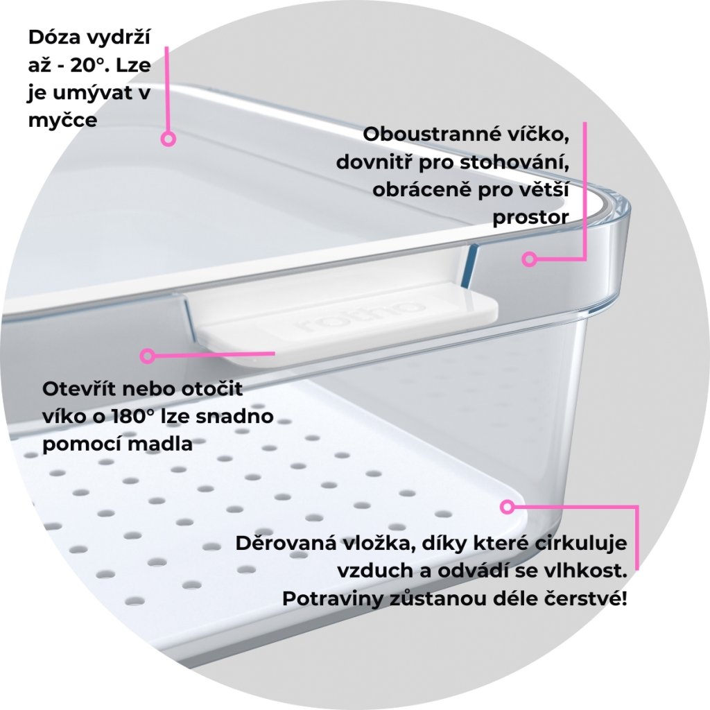 Organizér do chladničky CAUMA od značky Rotho prináša revolučný spôsob, ako udržať chladničku prehľadnú, hygienickú a maximálne efektívne využitú. Vďaka unikátnej trojdielnej konštrukcii – nádoba, veko a podložka – sa stane nepostrádateľným pomocníkom v každej domácnosti.