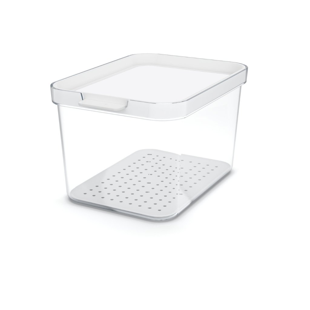 ✔ Vyberateľná dierovaná podložka – podporuje cirkuláciu vzduchu, chráni potraviny pred vlhkosťou