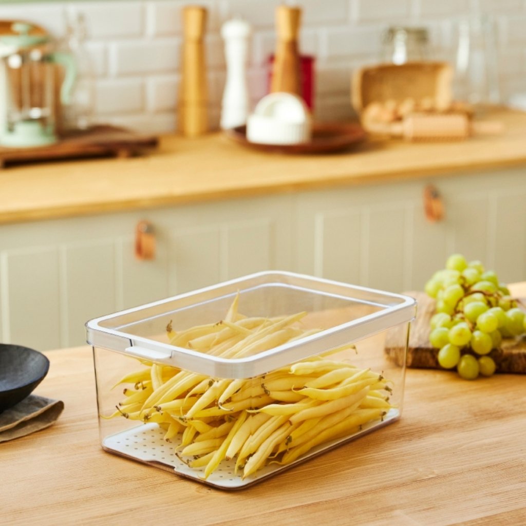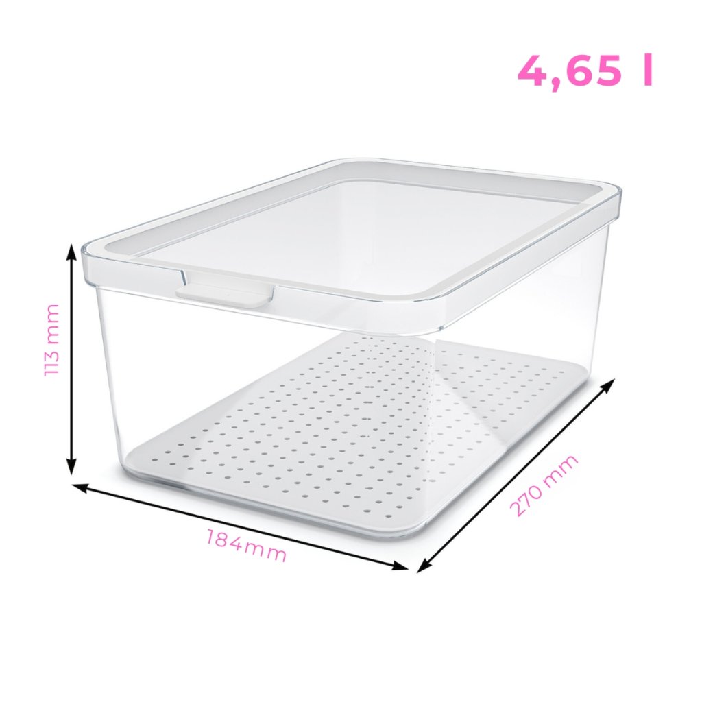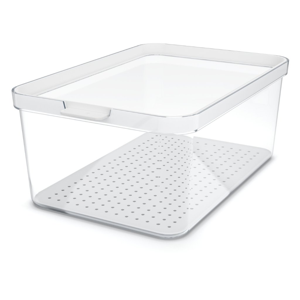 ✔ Vyberateľná dierovaná podložka – podporuje cirkuláciu vzduchu, chráni potraviny pred vlhkosťou