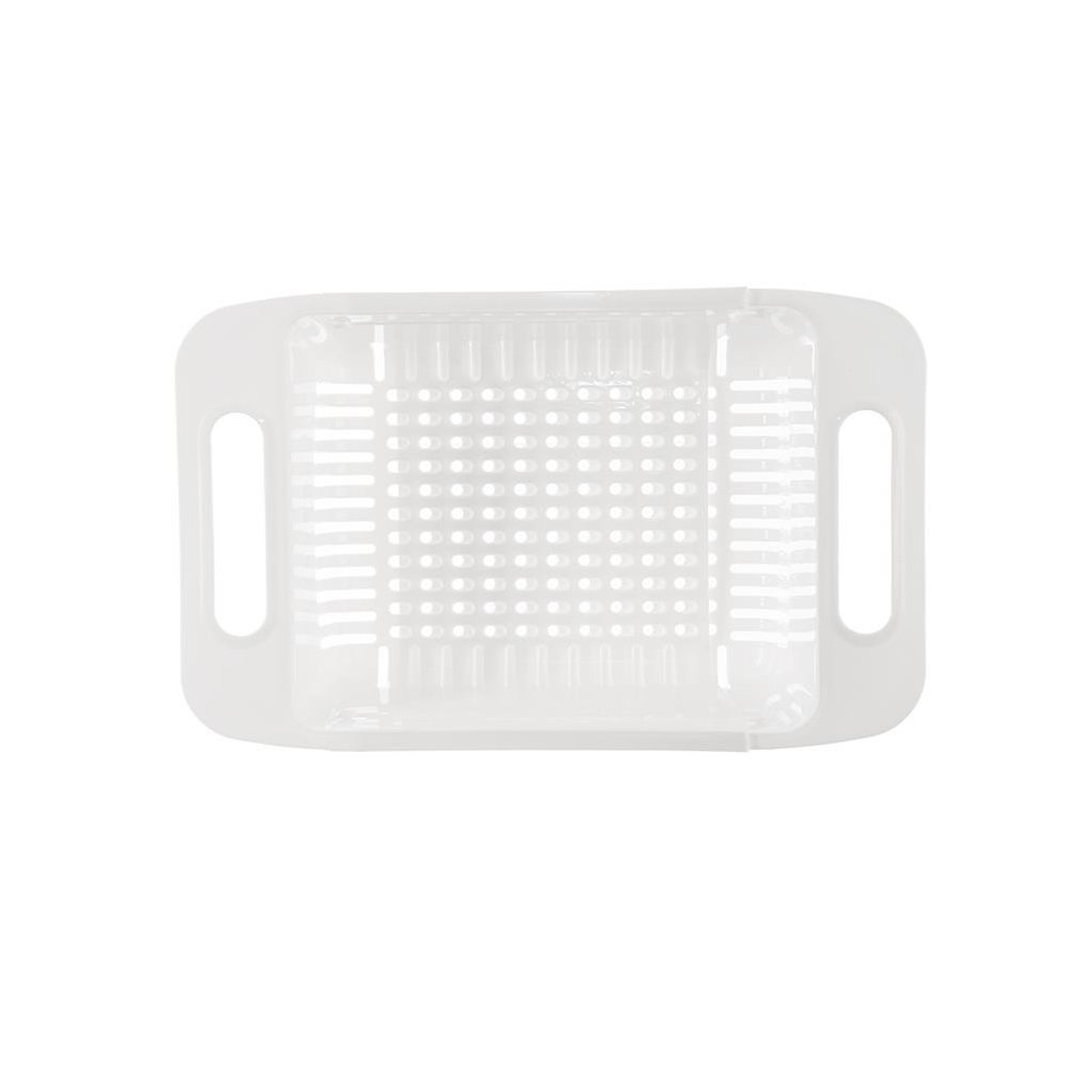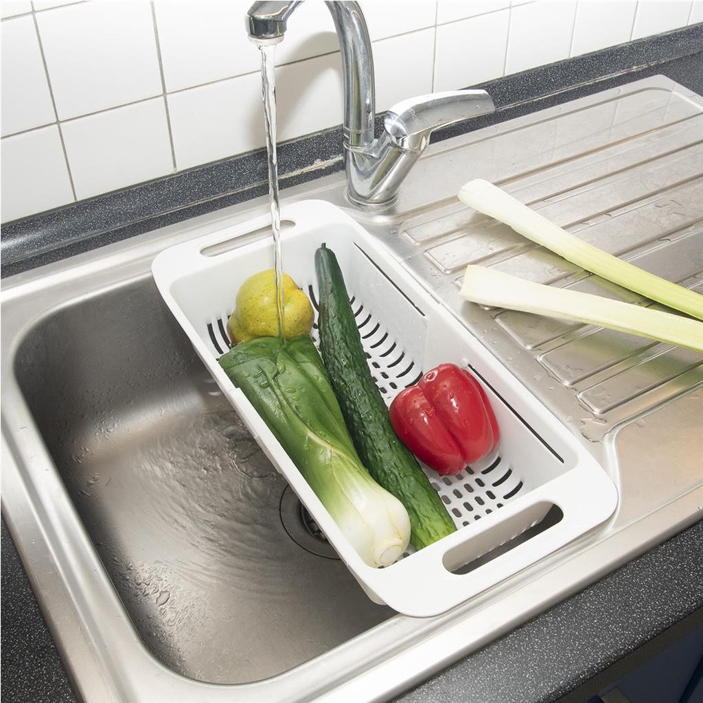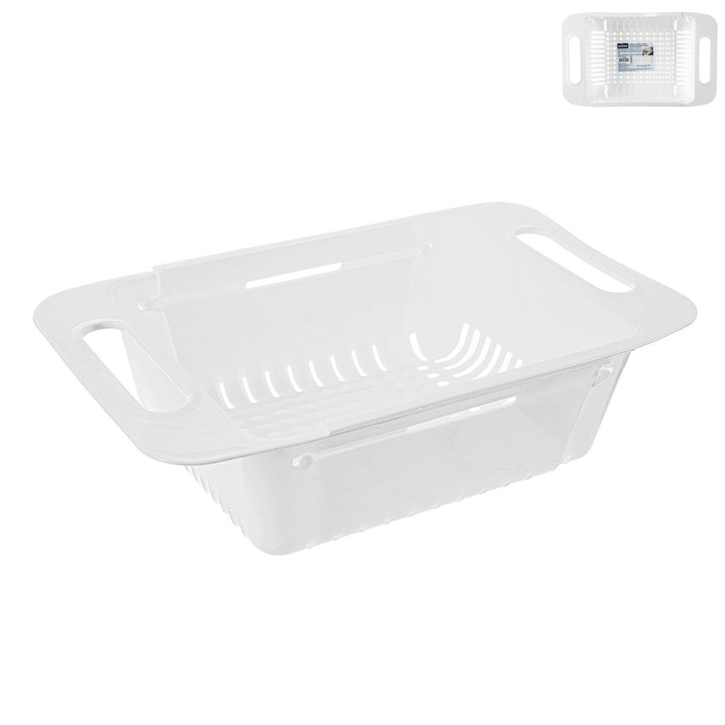 Tento univerzálny košík na drez s nastaviteľnou dĺžkou vám uľahčí každodennú prípravu jedla. Či už potrebujete prepláchnuť ovocie, zeleninu alebo scediť cestoviny, všetko zvládnete priamo nad drezom, bez zbytočného prenášania a neporiadku.