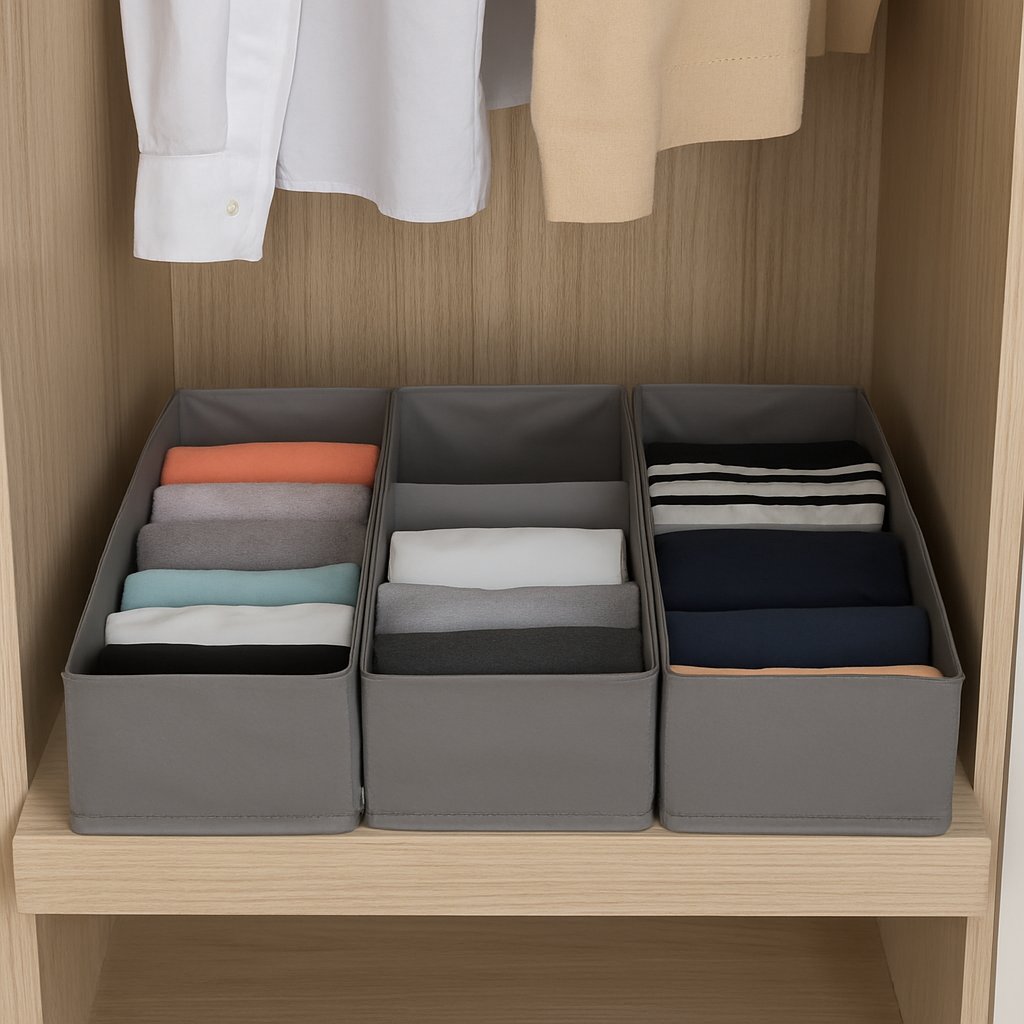 S týmto organizérom si rýchlo a jednoducho vytvoríte systém, v ktorom sa nestratíte. Je skladný, prehľadný, pevný a univerzálny – vhodný pre každú domácnosť, ktorá chce mať v skrini poriadok a štýl.