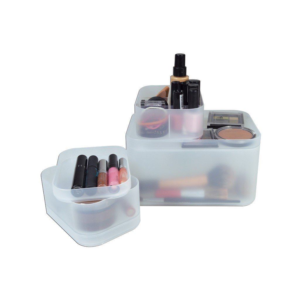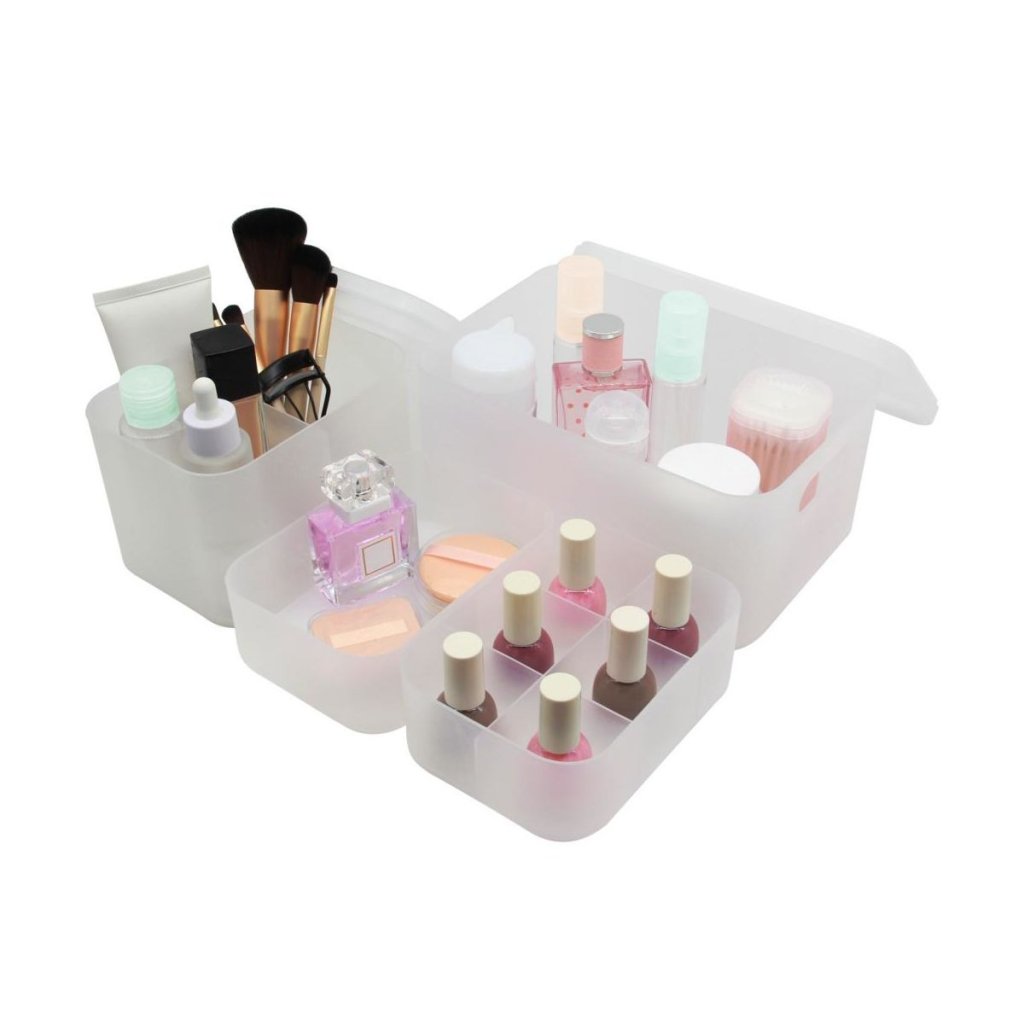 Hľadáte spôsob, ako prehľadne usporiadať kúpeľňovú kozmetiku, líčidlá alebo osobné doplnky? Súprava 4 plastových organizérov + 3 samostatné podnosy slúžiace ako veká Sensea sú ideálnym riešením! 🏡 Vďaka rôznym veľkostiam a praktickým priehradkám uľahčia organizáciu nielen v kúpeľni, ale aj v detskej izbe, šatníku alebo na pracovnom stole.