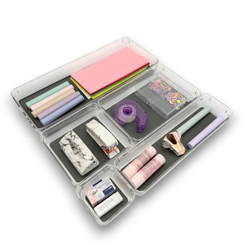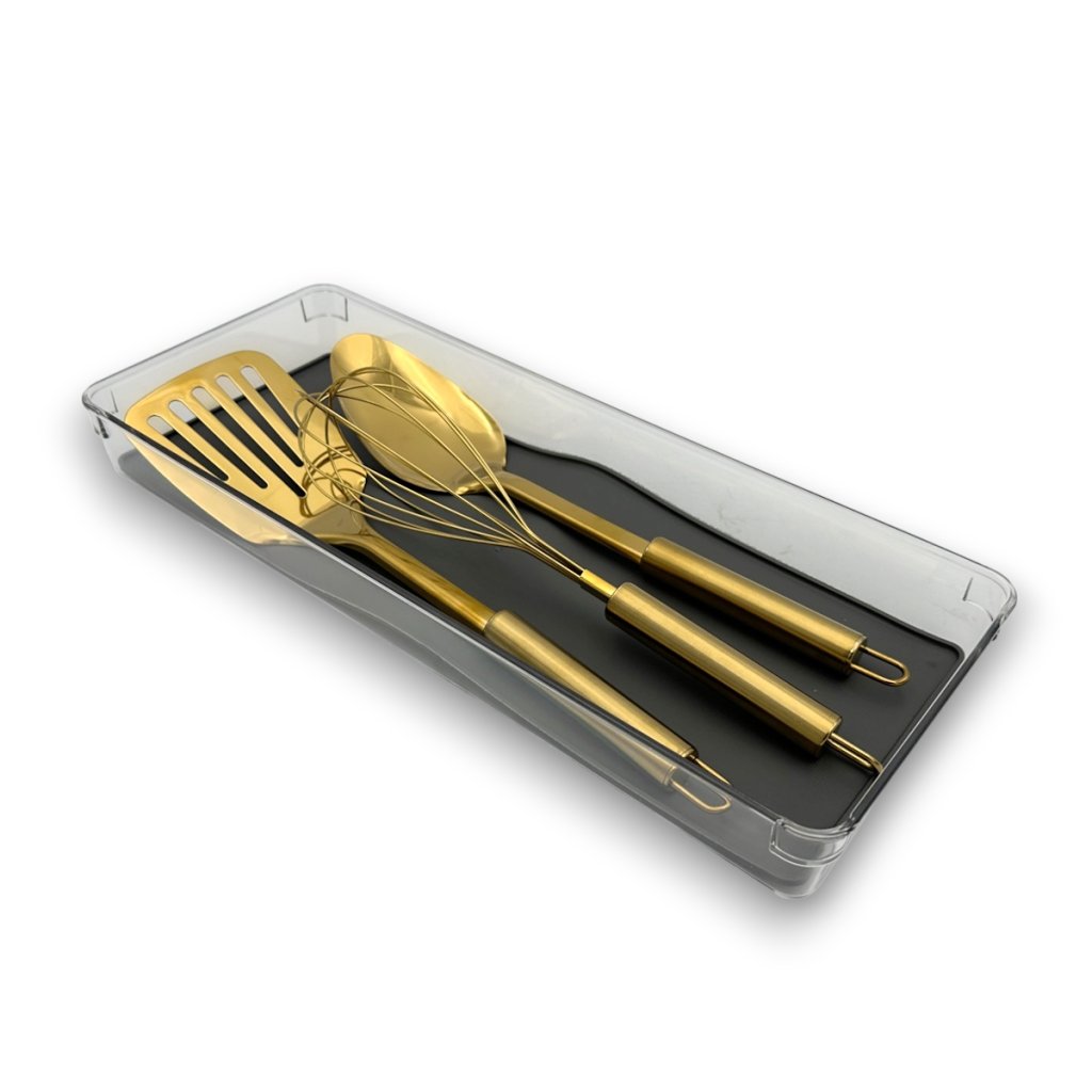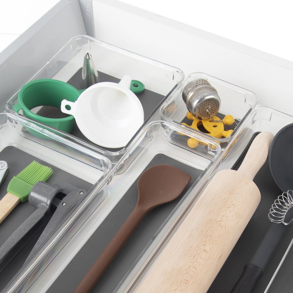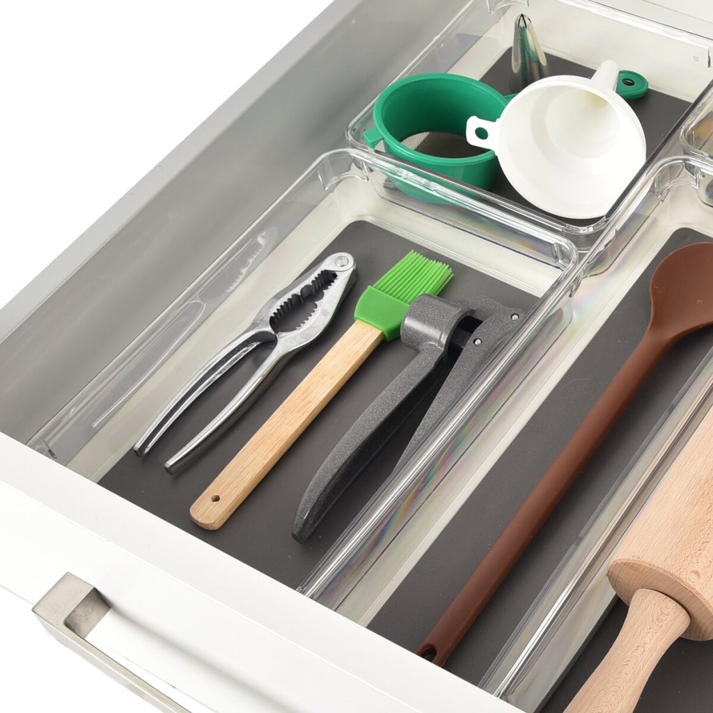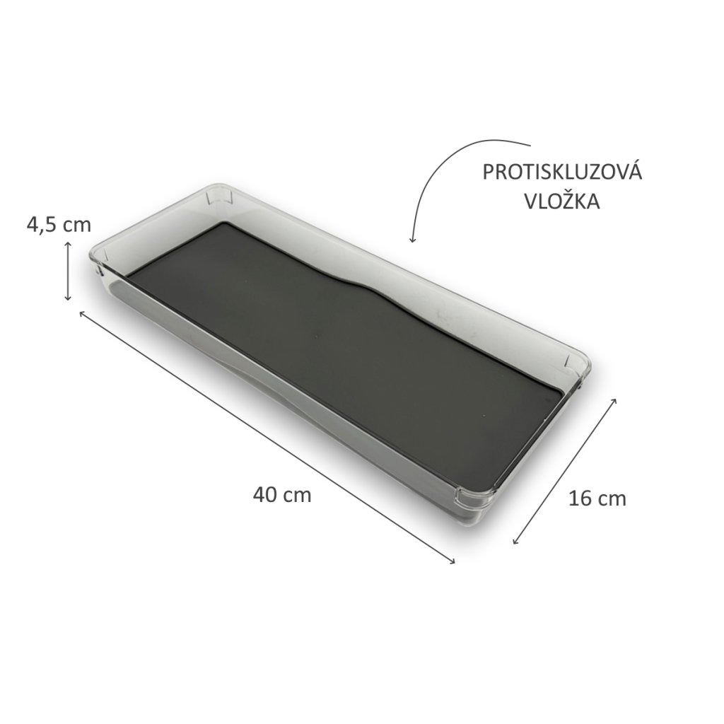 Tento transparentný plastový organizér je ideálnym riešením pre všetkých, ktorí chcú mať doma alebo v kancelárii poriadok. Vďaka protišmykovej úprave a odolnému prevedeniu skvele poslúži v kuchynskej zásuvke, na písacom stole aj v kúpeľňovej skrinke.