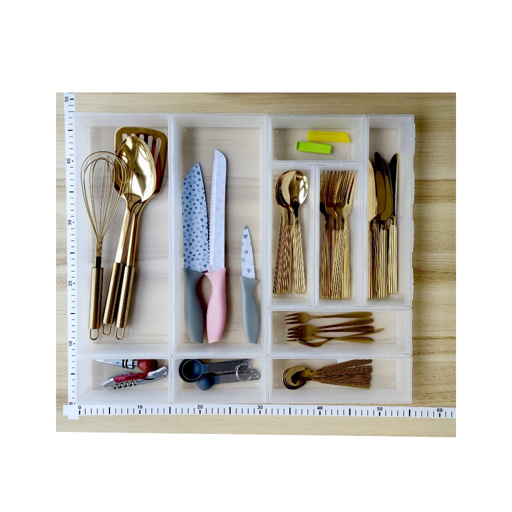 - Stabilita a flexibilita: Integrovaná pripojovacia zarážka zaisťuje pevné uloženie organizérov v zásuvke.