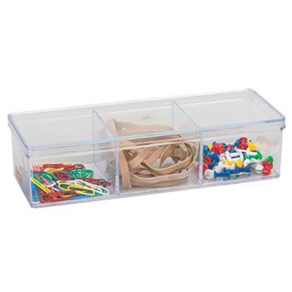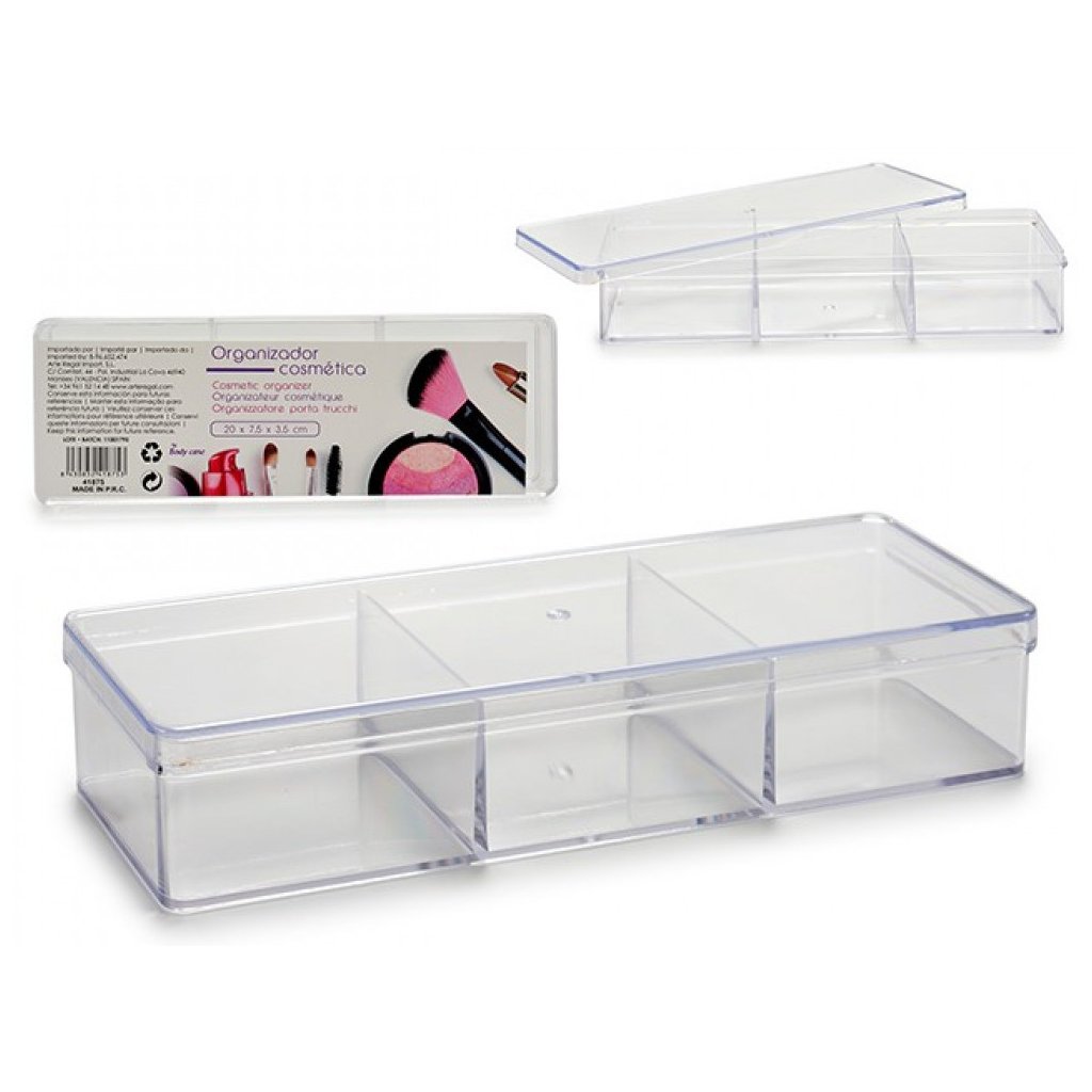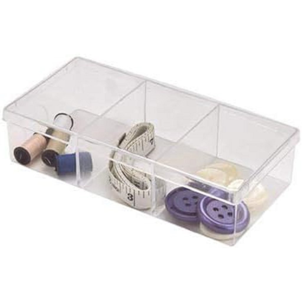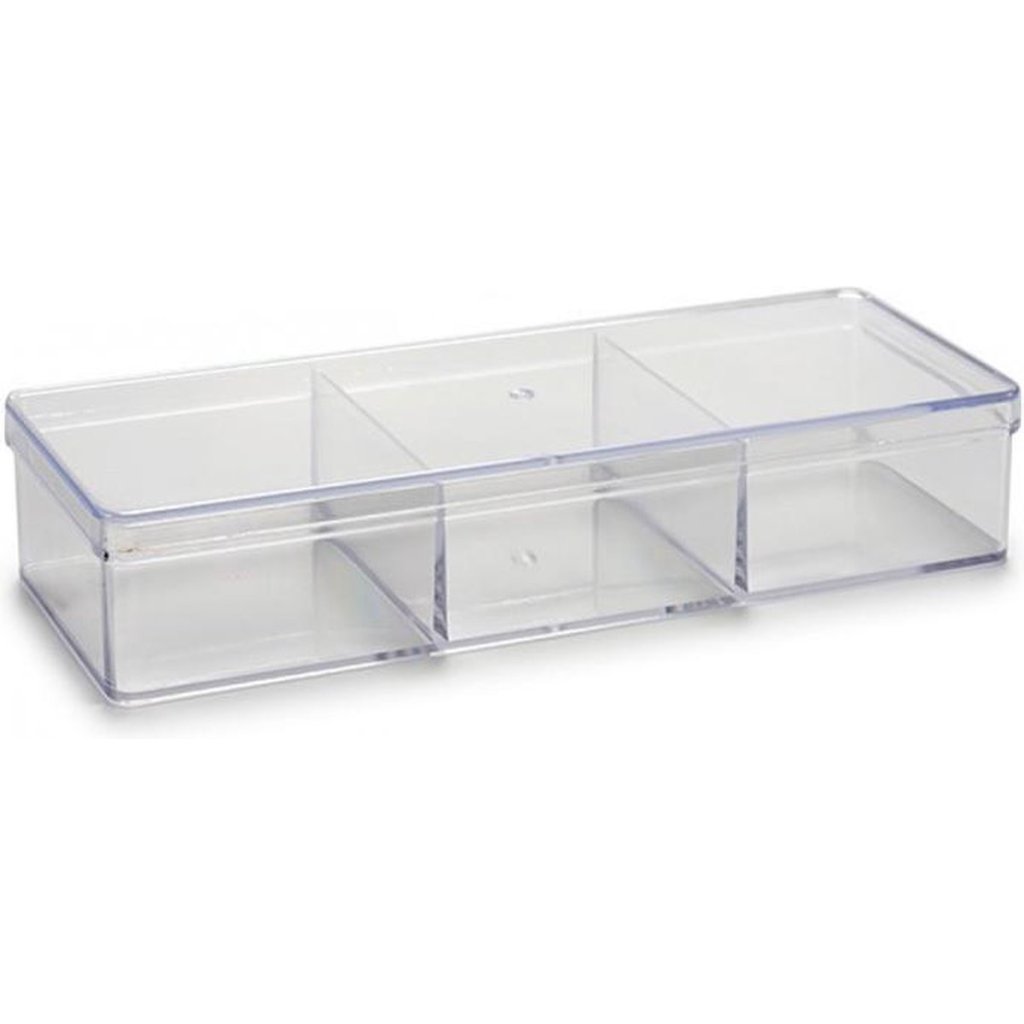 Bez týchto praktických organizérov sa v domácnosti nezaobídete! Tento kompaktný box ponúka tri priehradky a odnímateľné veko, vďaka ktorému je možné stohovať viac organizérov na seba. Priehľadný dizajn vám umožní rýchlo nájsť uložené predmety bez toho, aby ste museli organizér otvárať.