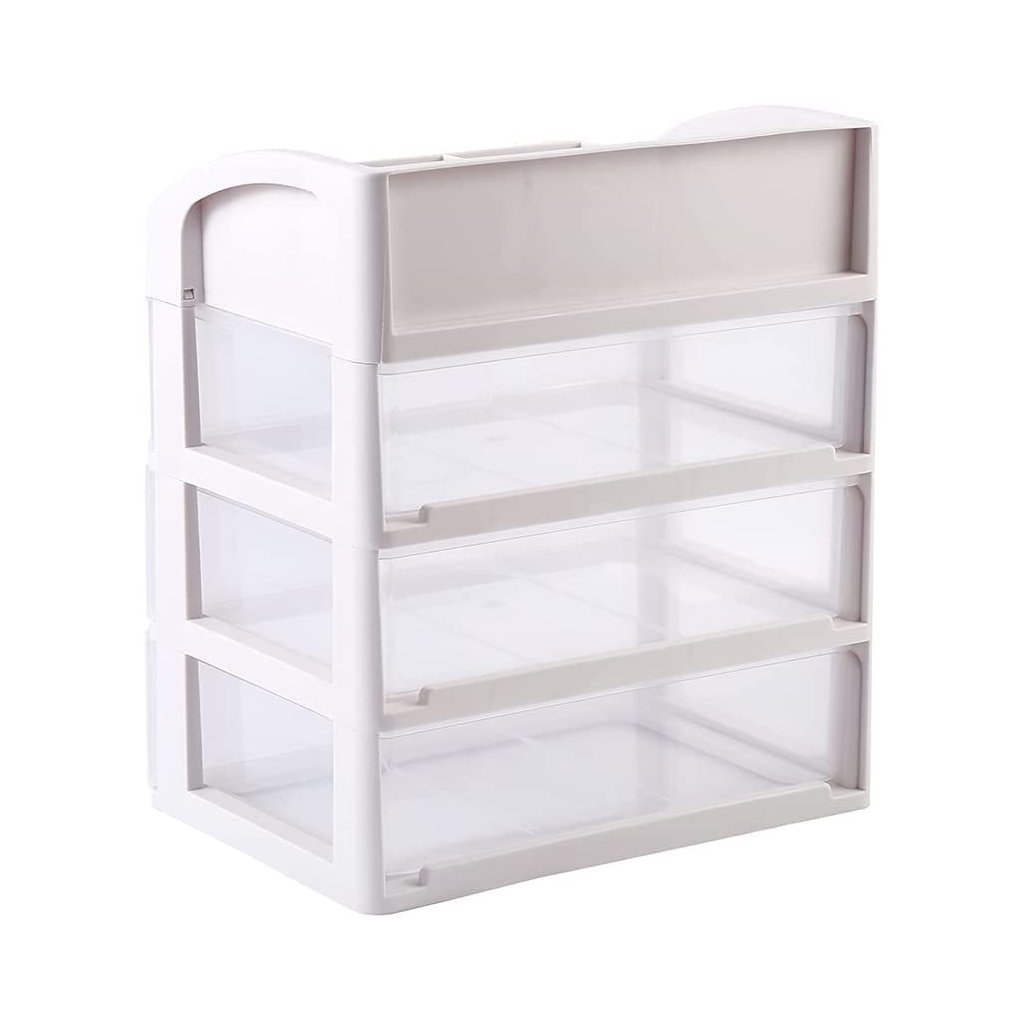 Elegantný a praktický zásuvkový organizér je ideálny na usporiadanie kozmetiky, make-upu, šperkov a kancelárskych potrieb. Vďaka transparentnému prevedeniu s mliečnym lemovaním jasne vidíte, čo je vnútri, a ľahko nájdete potrebné veci. Tri priestranné zásuvky a horné priehradky poskytujú dostatok úložného priestoru a pomáhajú udržať poriadok v kúpeľni, spálni alebo kancelárii.