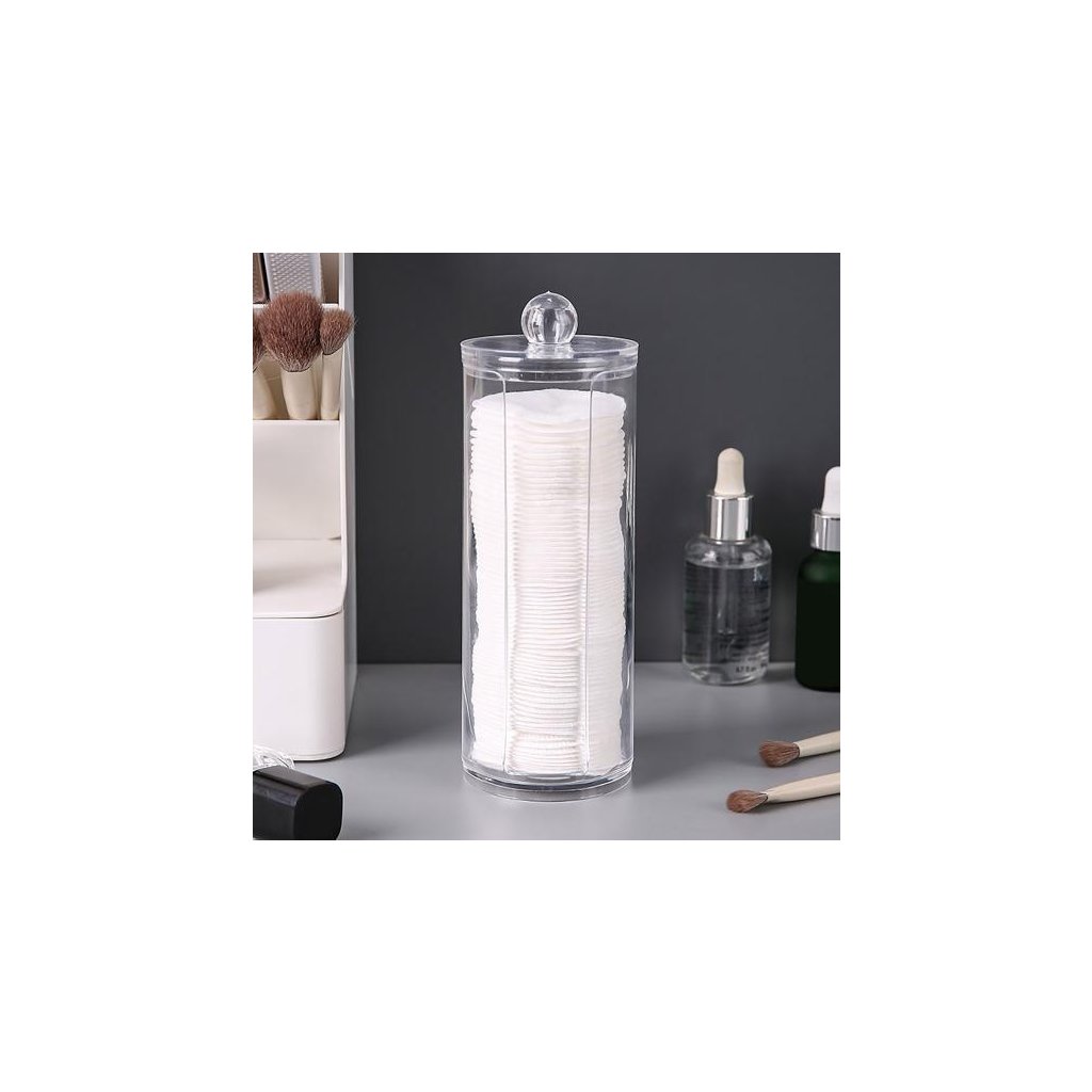 Tento elegantný držiak z číreho akrylu je praktický, hygienický a perfektne organizuje vaše kozmetické tampóny.