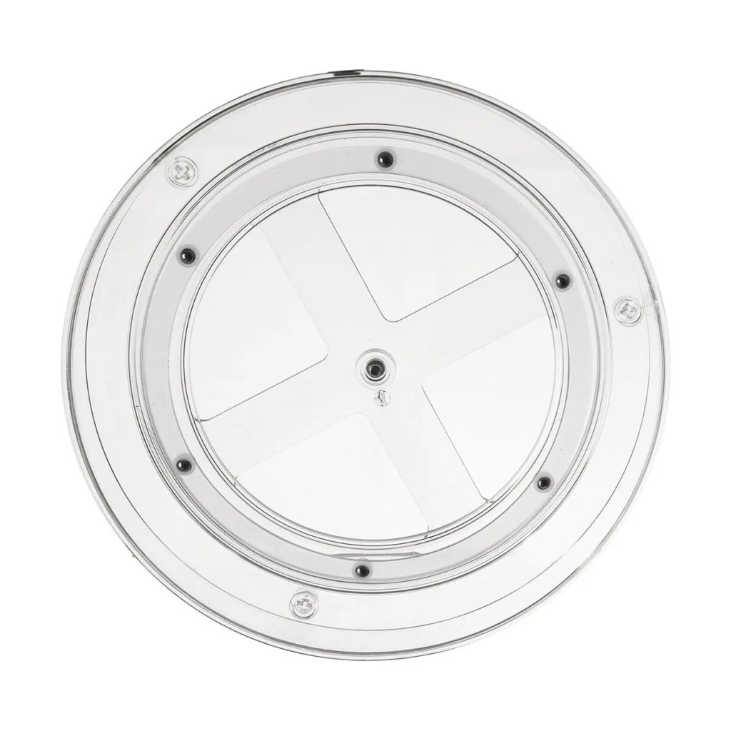 - Nízky okraj: Otočný tanier má nízky okraj, ktorý pomáha udržiavať predmety na mieste a zabraňuje ich pádu.