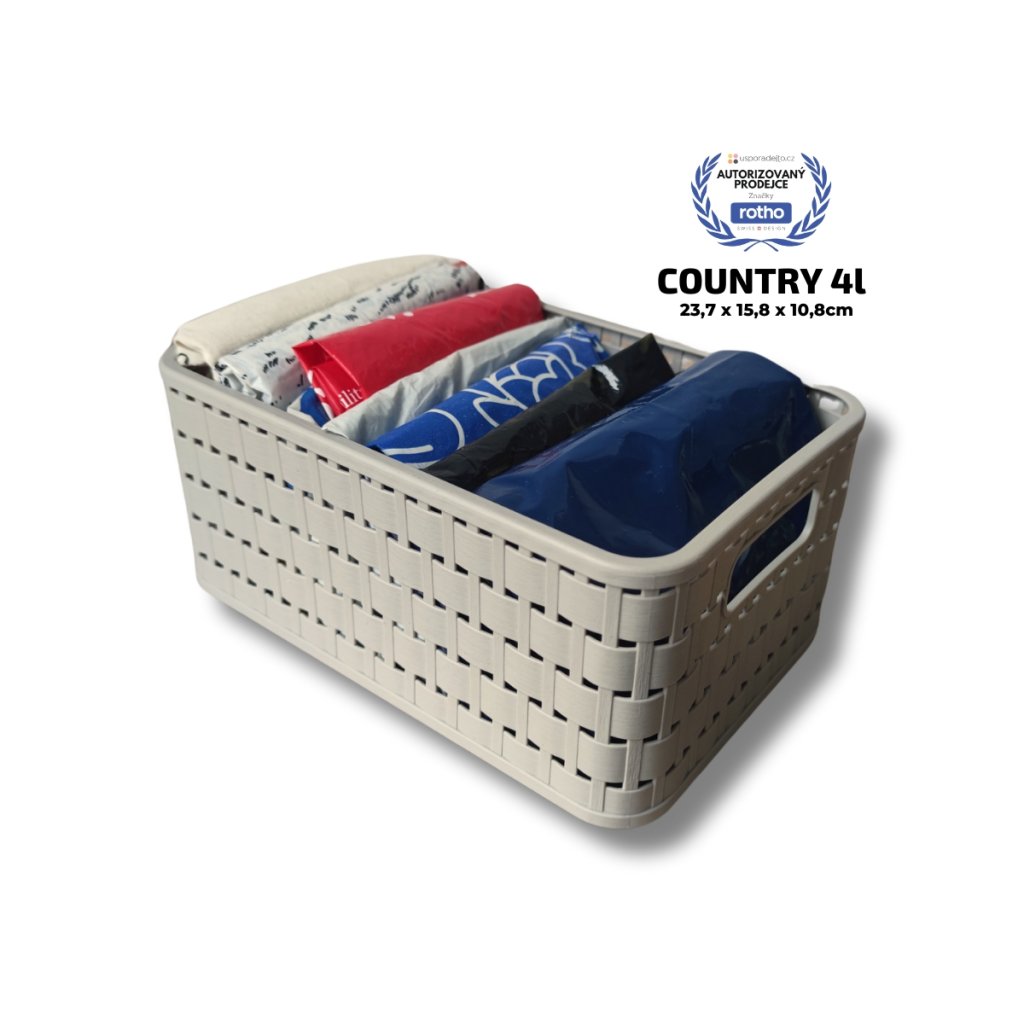 ✔ Vďaka ratanovému vzhľadu pôsobia útulne a zároveň sa jednoducho udržiavajú, keďže sú z plastu. Ide o ideálny úložný systém do celej domácnosti. Ak hľadáte spôsob, ako si zorganizovať čokoľvek, na košík COUNTRY od ROTHO sa môžete vždy spoľahnúť. Vďaka veľkému výberu veľkostí a farieb vždy nájdete ten správny do vašej skrine, police alebo regálu.