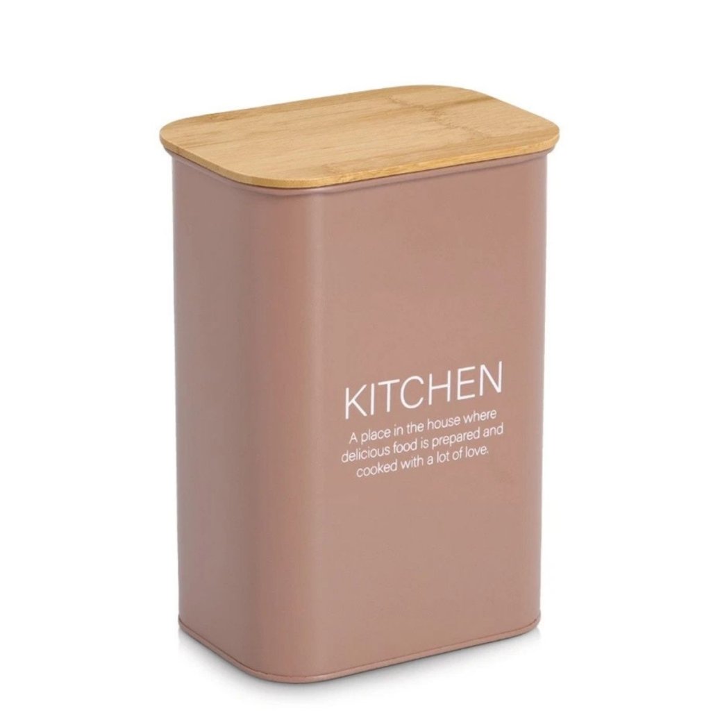 Plechová dóza s bambusovým vekom, mandľová KITCHEN ZELLER 3l - 17 x 12 x 25 cm