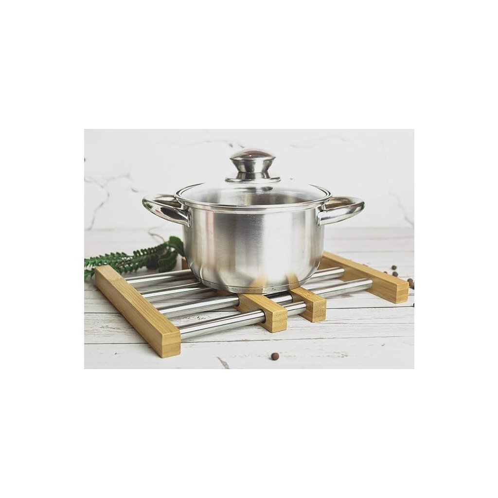 Táto podložka, vyrobená z vysoko kvalitného bambusu a nerezovej ocele, chráni váš stôl a pracovnú dosku pred horúcimi hrncami a panvicami. Podložku je možné jednotlivo vytiahnuť a je teda vhodná aj pre pekáče, veľké hrnce a panvice.