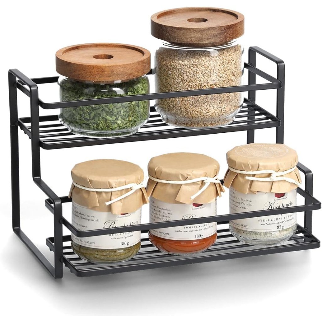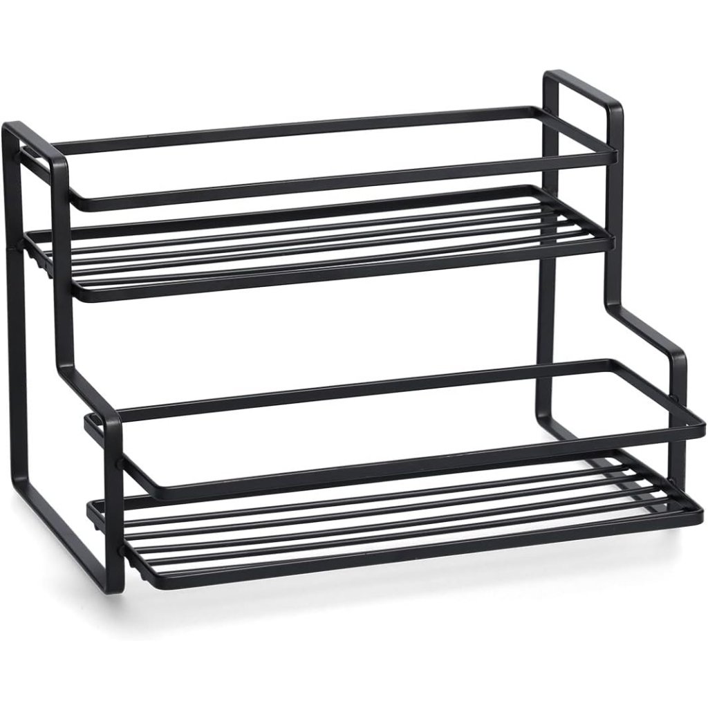 Dvojposchodová polica na korenie RACK – 26 × 20 × 17 cm, čierna