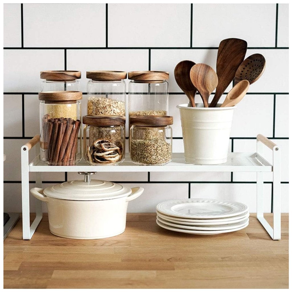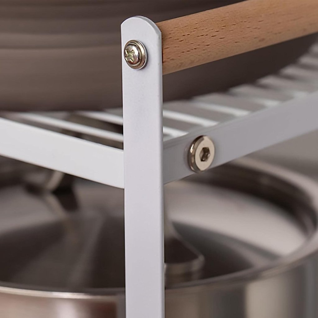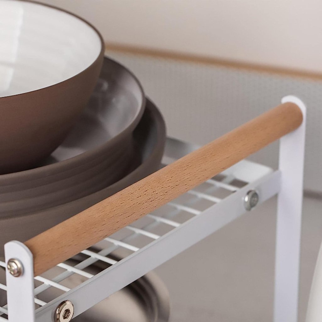 Prídavná kovová polica s drevenými držadlami, odkvapkávač, biely kov RADKA - 35x22x18