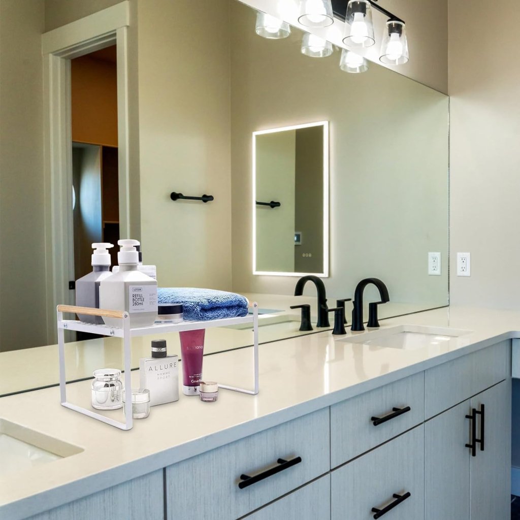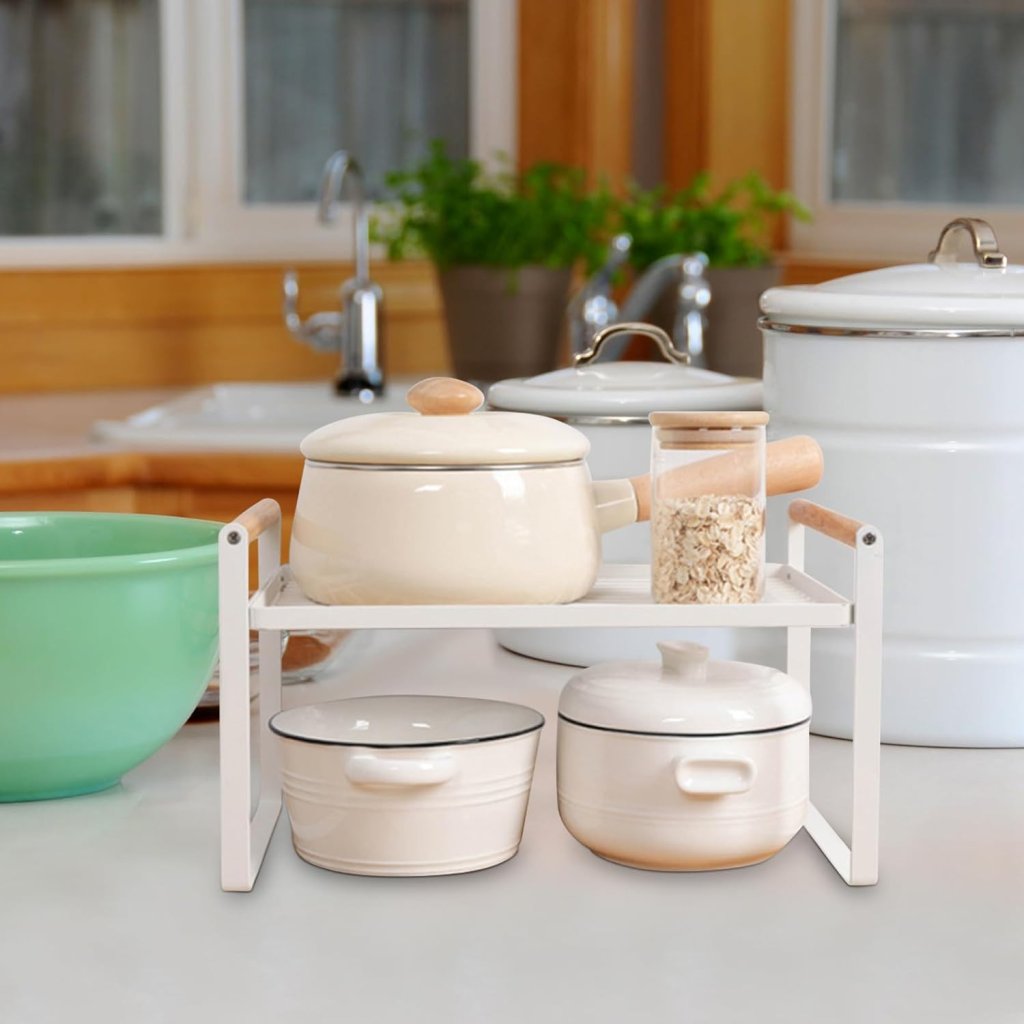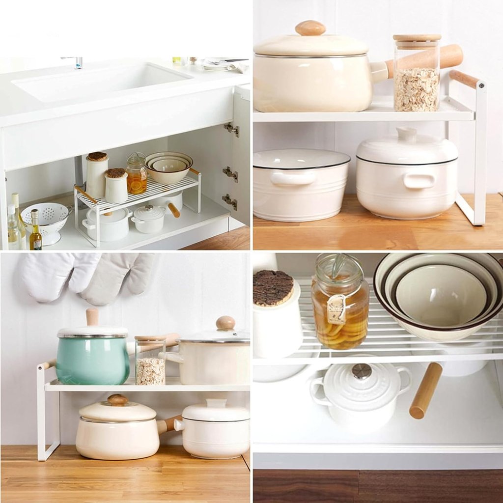 Prídavná kovová polica s drevenými držadlami, odkvapkávač, biely kov RADKA - 35x22x18