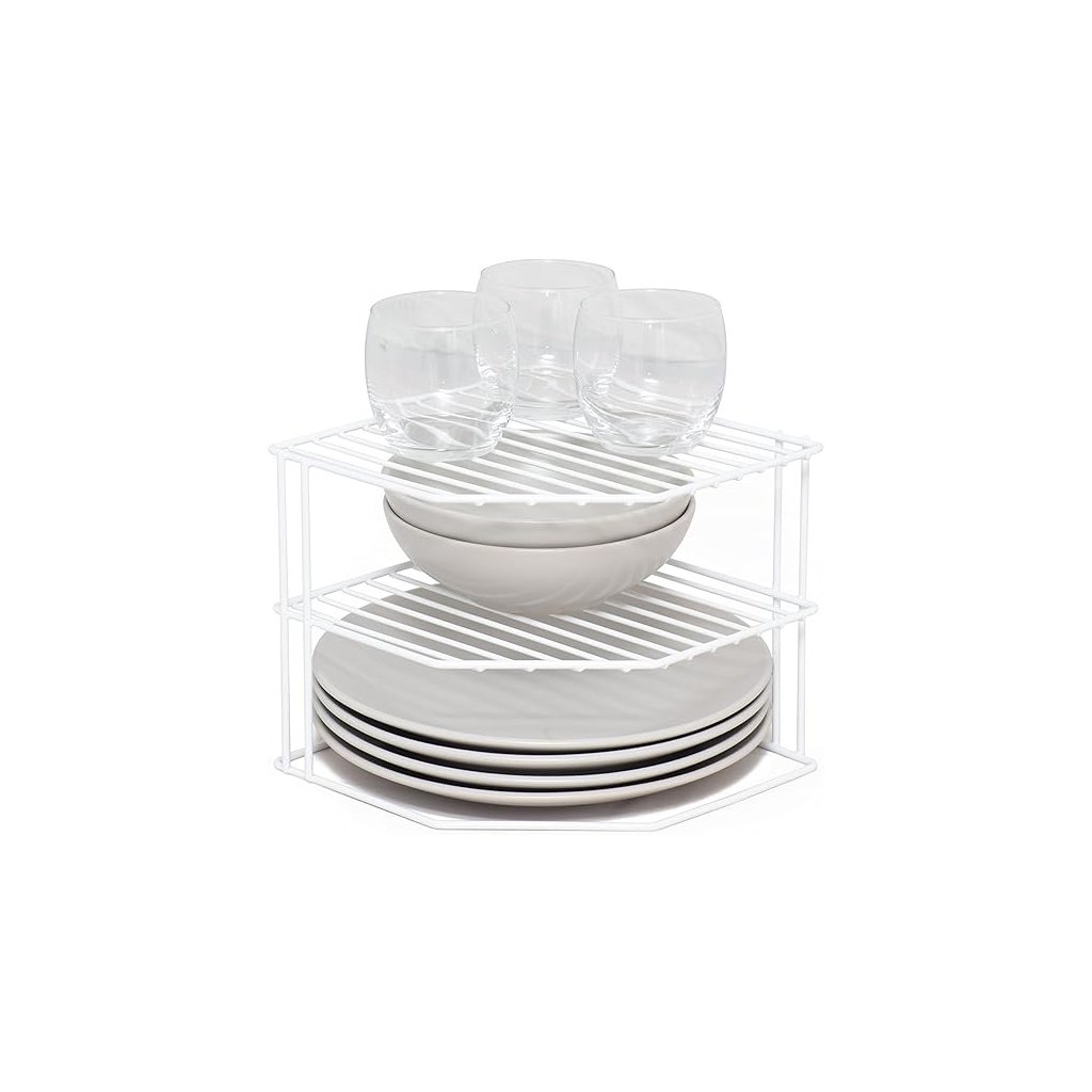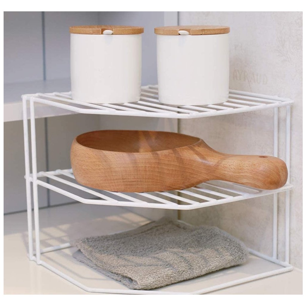 Prídavná polica, 2-poschodová, rohová, biely kov 22 x 22 x 20