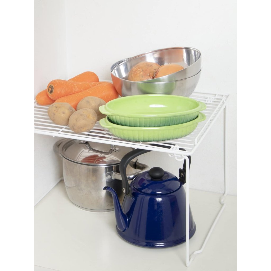 Táto prídavná kovová polica vám pomôže maximálne využiť priestor, ktorý už máte. Či už potrebujete pridať poschodie v kuchynskej linke, oddeliť veci v skrini alebo si len usporiadať pracovný stôl – bude vám spoľahlivým pomocníkom.