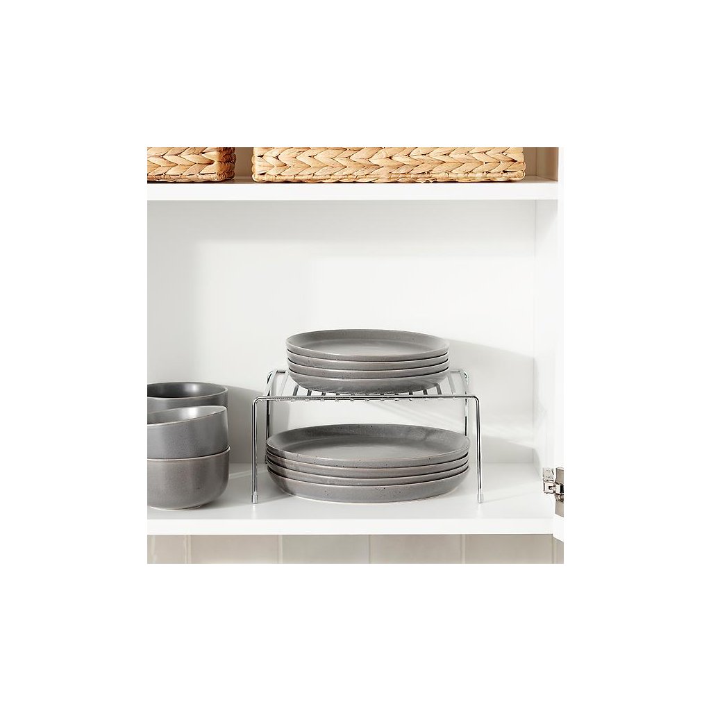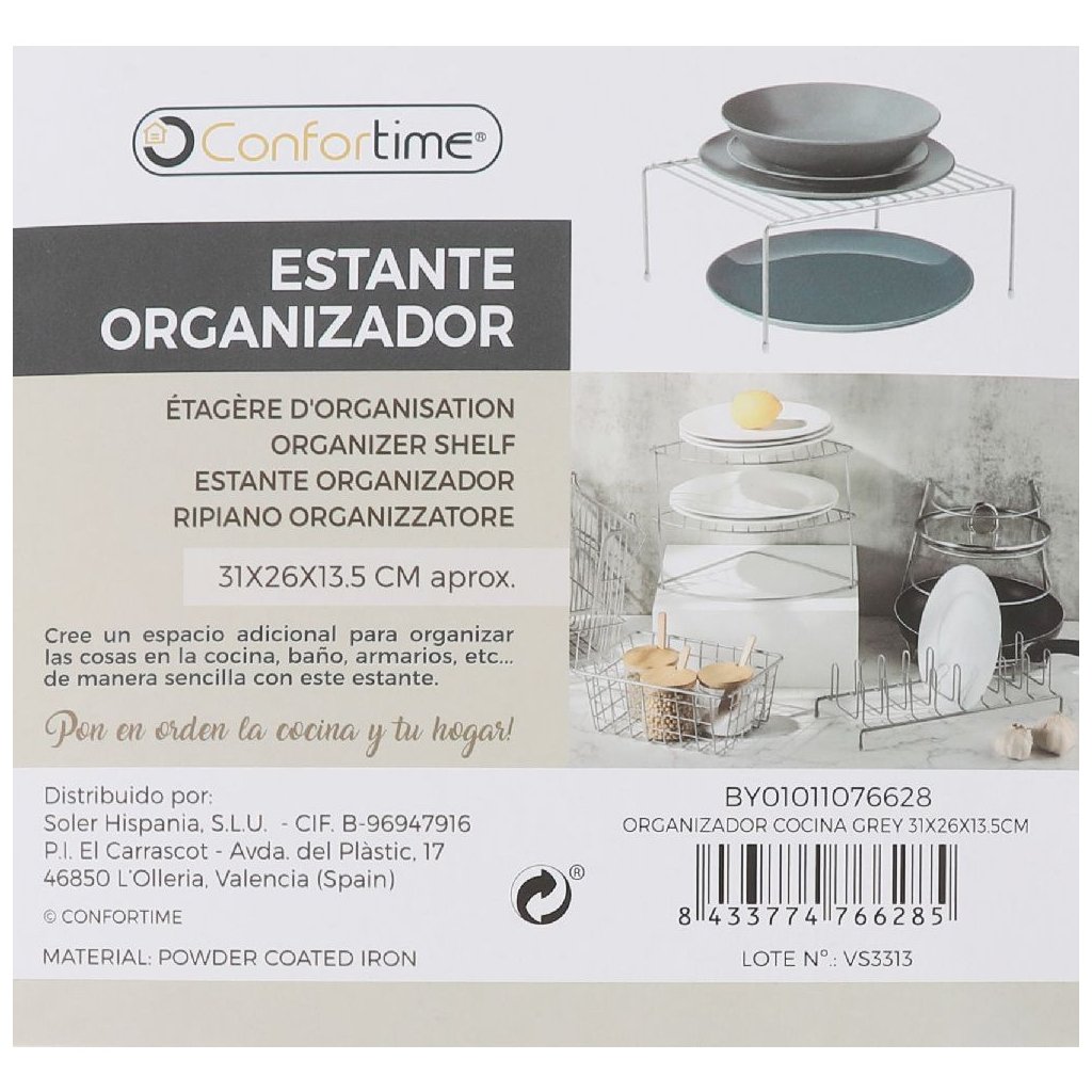 Táto úložná polica je ideálna pre tých, ktorí chcú získať viac miesta v kuchynských skrinkách, na pracovných plochách alebo v knižnici. Vďaka svojej robustnej kovovej konštrukcii poskytuje stabilné a odolné úložné riešenie pre taniere, poháre, šálky, dózy aj knihy.