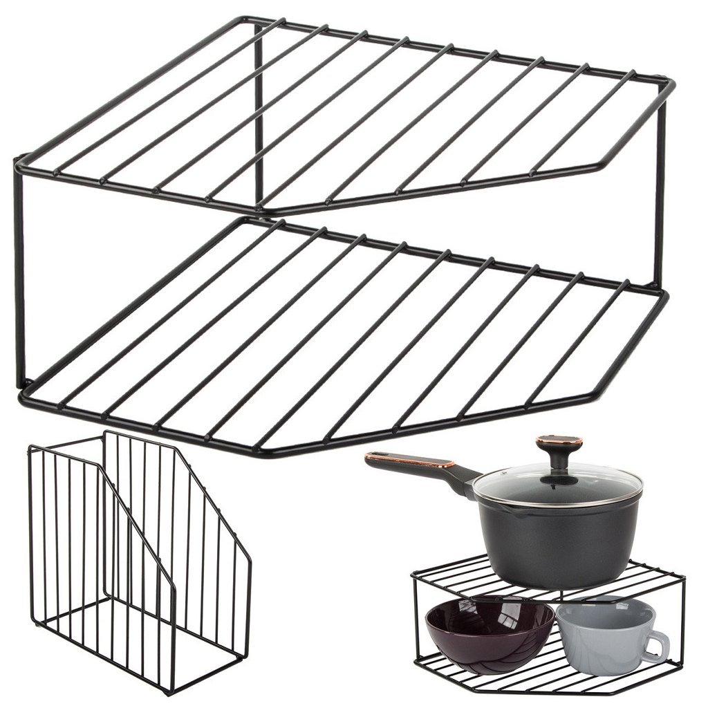Táto praktická rohová polica je ideálnym riešením pre efektívnu organizáciu kuchynskej linky, skriniek alebo kúpeľne. Dvojpodlažná konštrukcia umožňuje využiť každý centimeter miesta, zatiaľ čo moderný kovový dizajn dodáva eleganciu a funkčnosť.