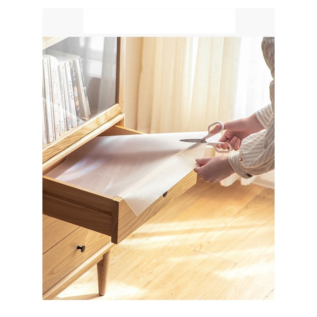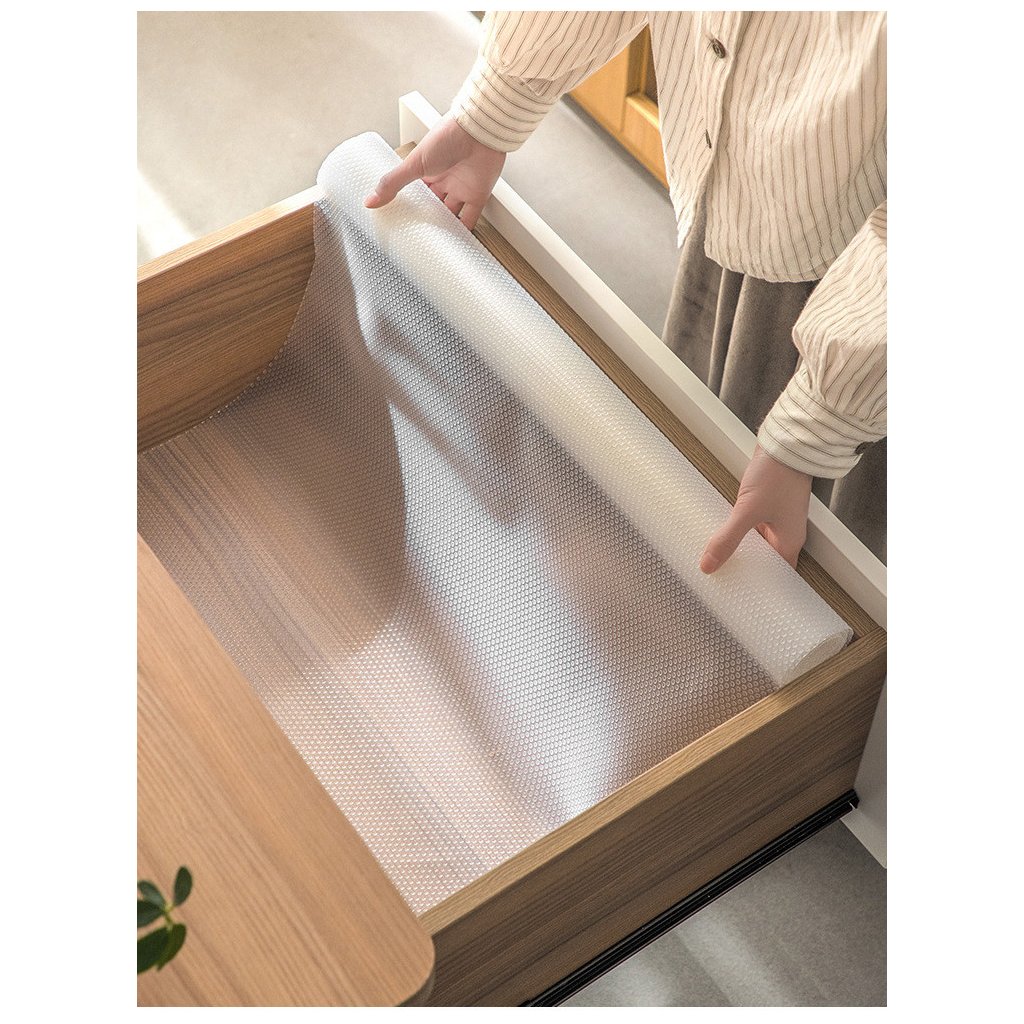 Táto praktická podložka je skvelým pomocníkom na ochranu zásuviek, skriniek a políc pred poškriabaním, znečistením a poškodením. Je vyrobená z odolného plastu a gumy, vďaka čomu tlmí nárazy, zabraňuje kĺzaniu predmetov a pomáha udržať poriadok v každej domácnosti.