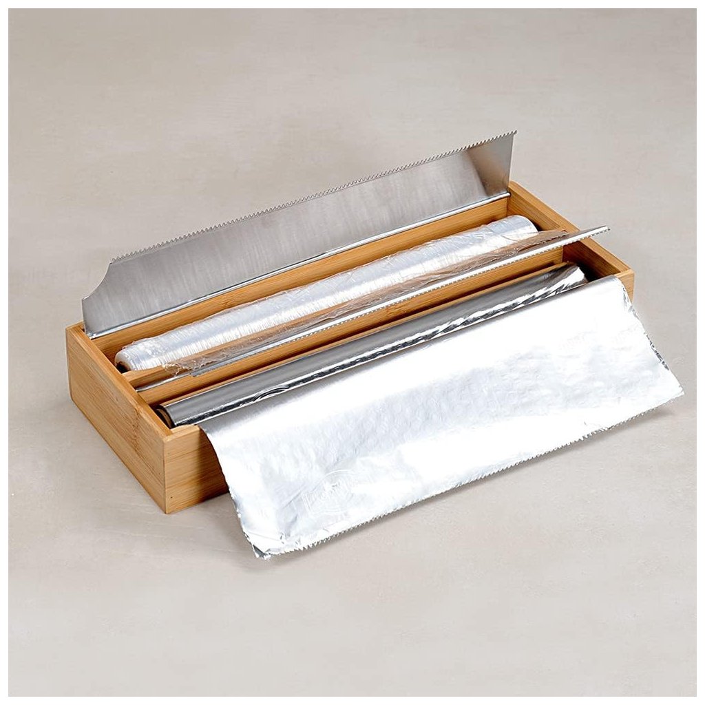 Štýlový bambusový držiak s nerezovou rezacou hranou ti umožní pohodlne, rýchlo a presne odtrhnúť potrebnú dĺžku fólie – bez zbytočného odmotávania a hľadania.