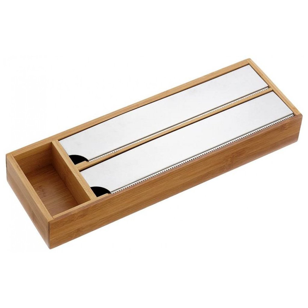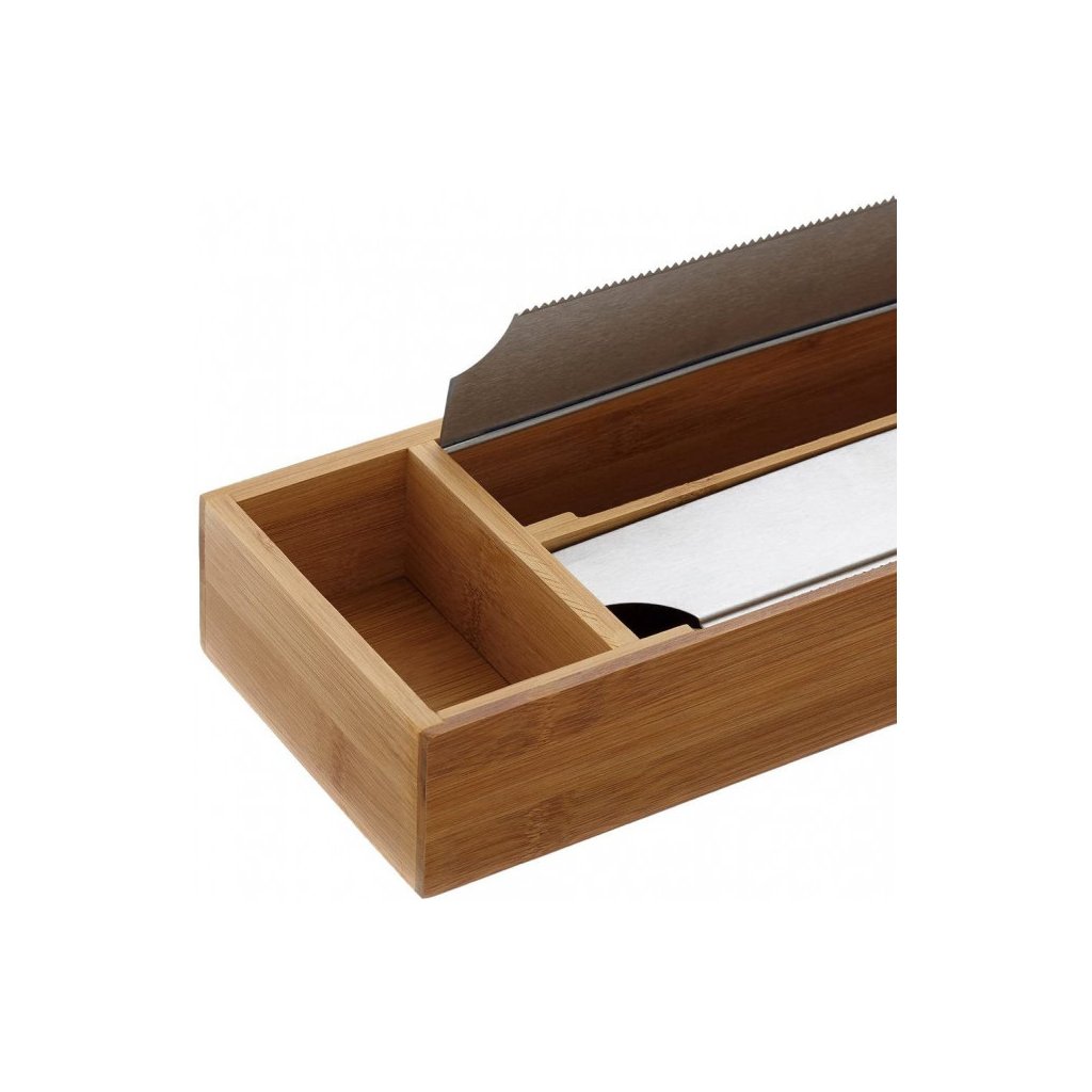Rezačka a zásobník na fóliu a alobal, bambusový, 3 priehradky