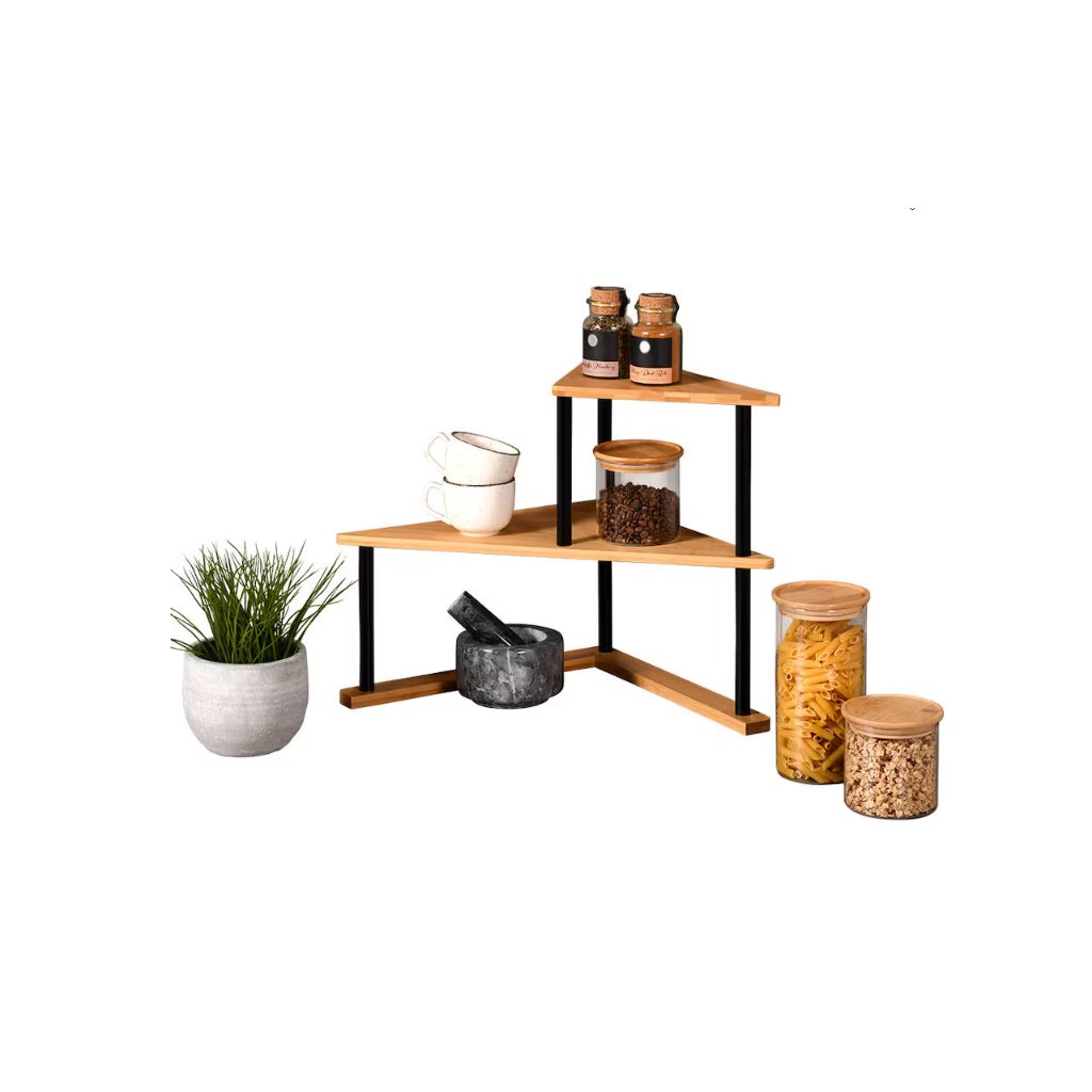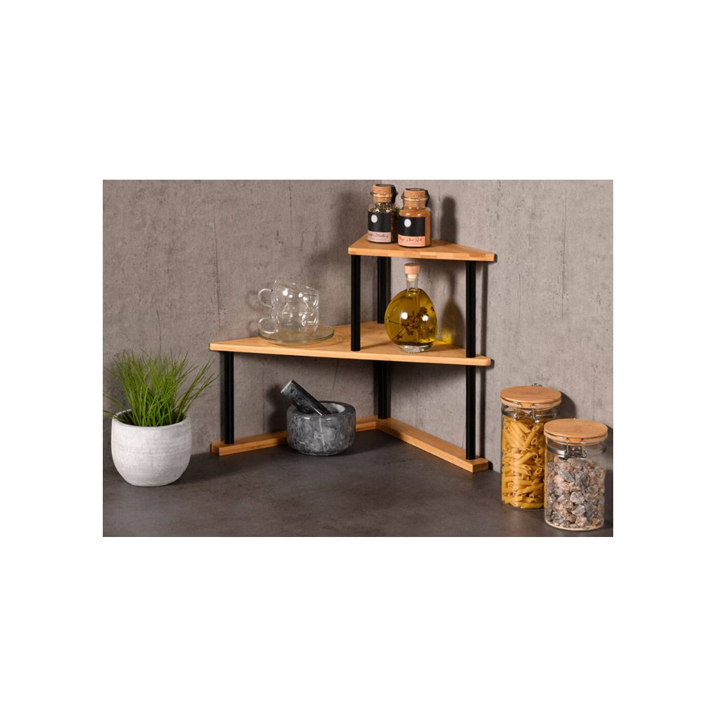 ROHOVÁ KUCHYNSKÁ POLICA – BAMBUSOVÁ S ČIERNYMI PRVKAMI