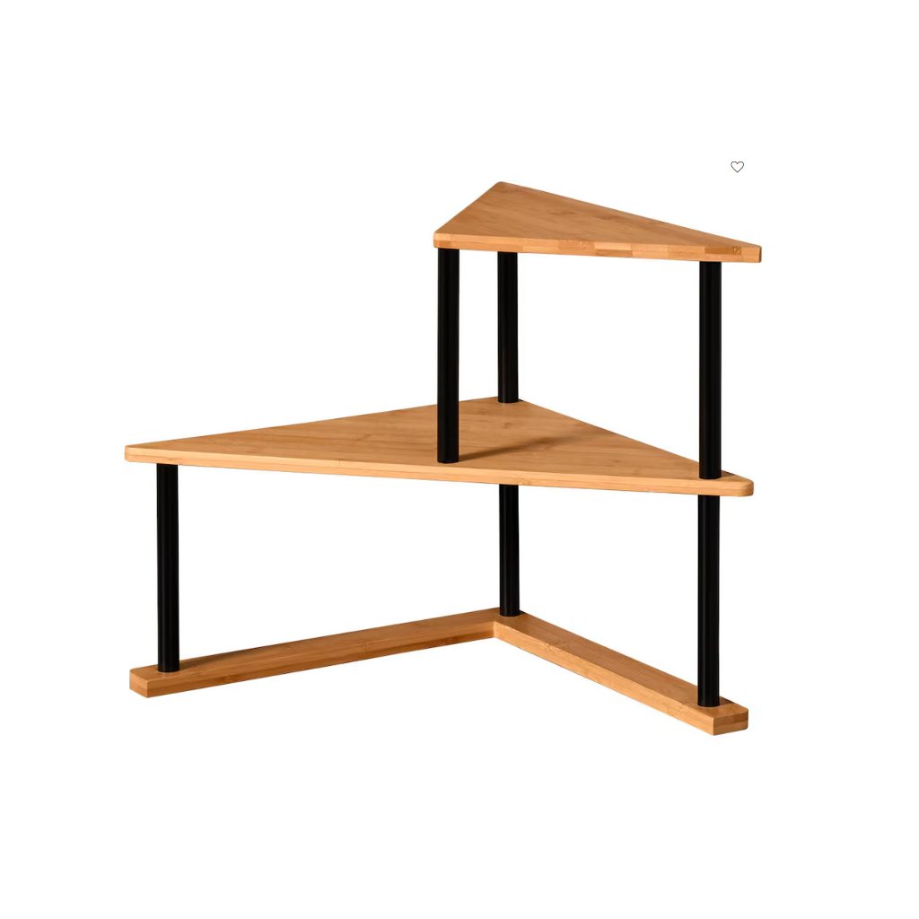 Táto dvojposchodová rohová polica z bambusu premení takéto miesto na praktický a prehľadný úložný priestor.