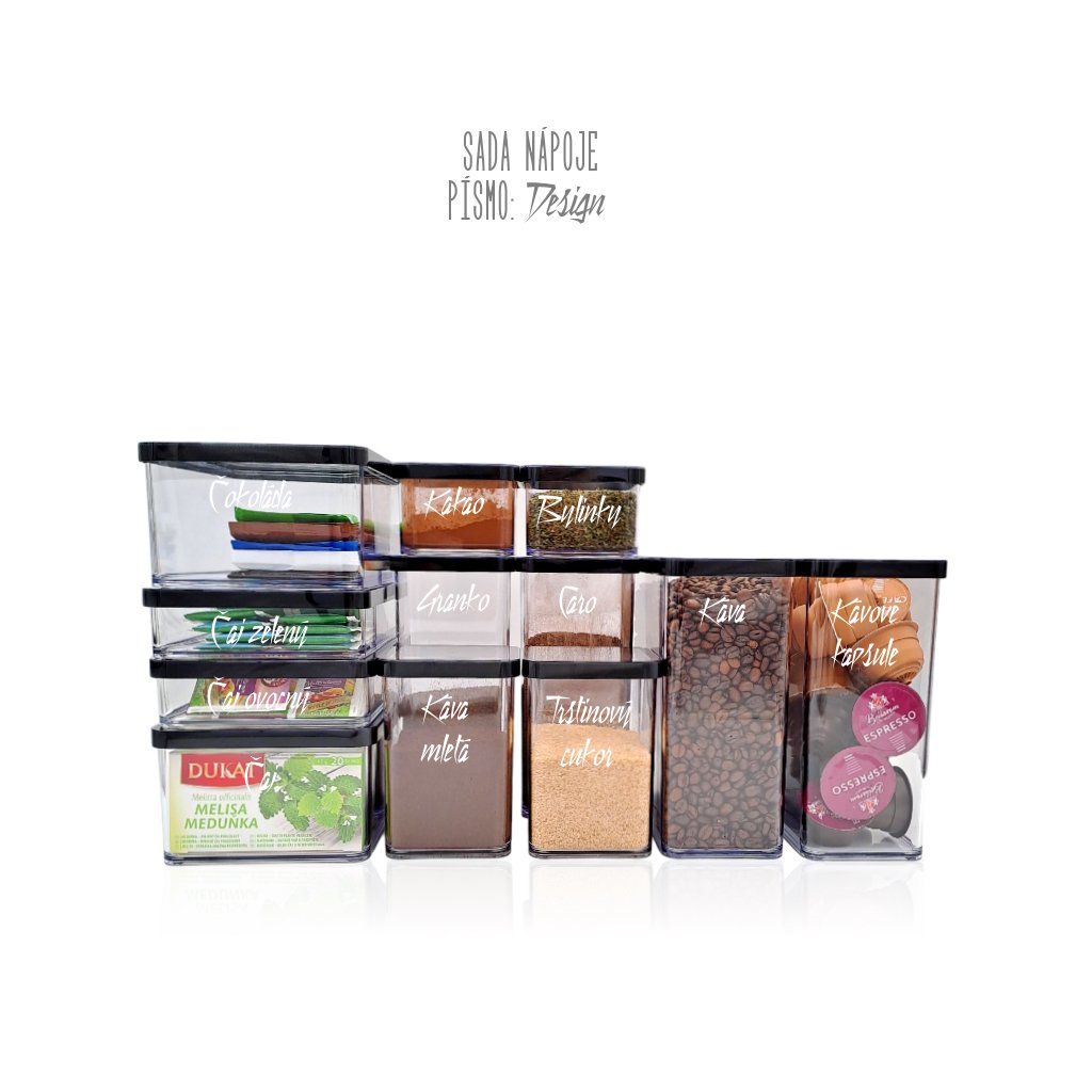 Vďaka štítkom budete mať všetky dózy a nádoby prehľadne označené, čo uľahčuje organizáciu a vyhľadávanie. Už žiadne hľadanie toho, čo sa skrýva vnútri. Každý obsah bude jasne označený a ľahko dostupný.