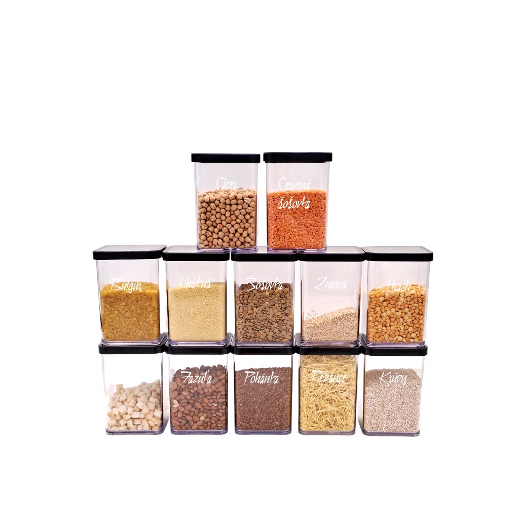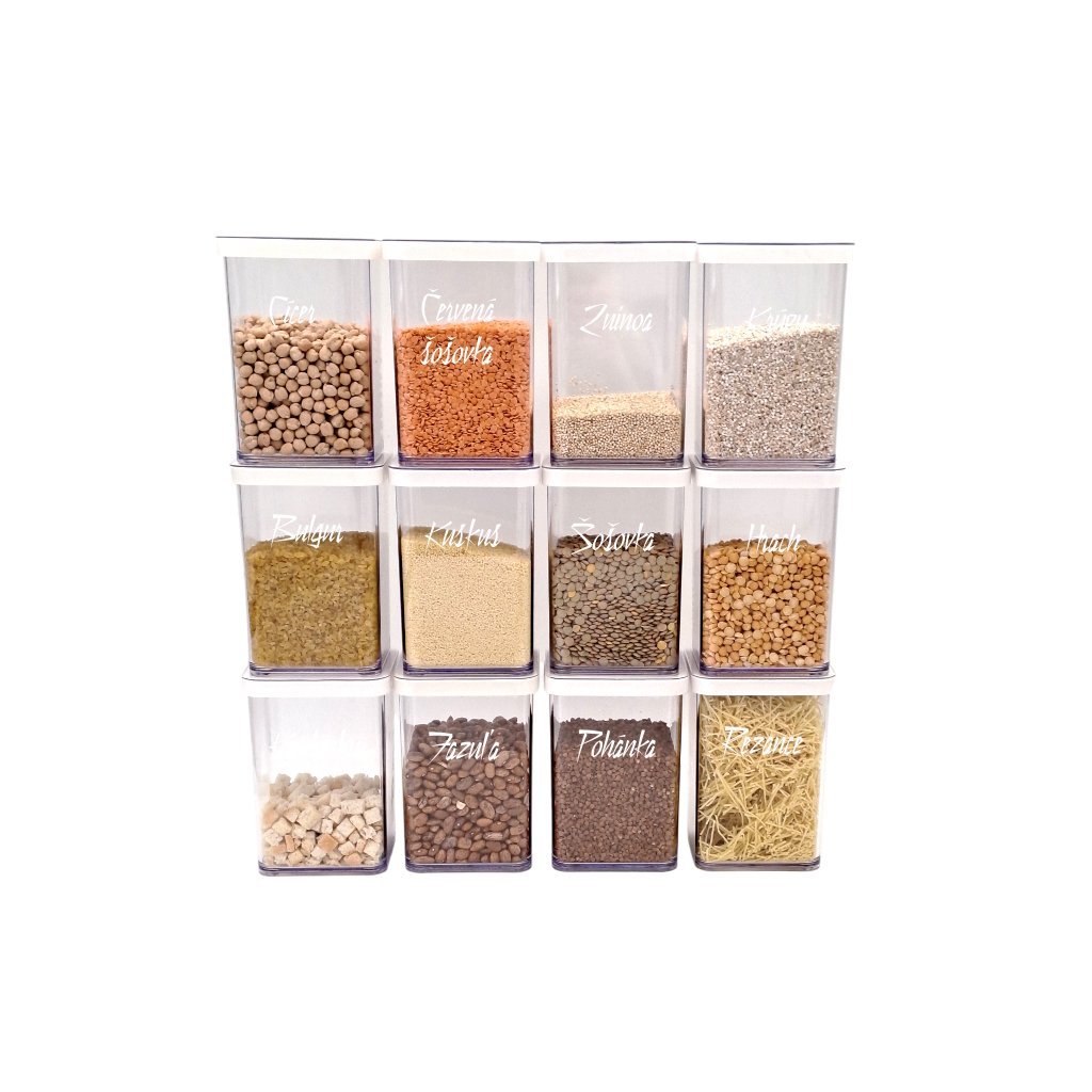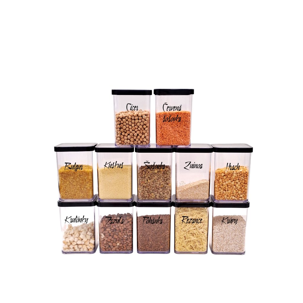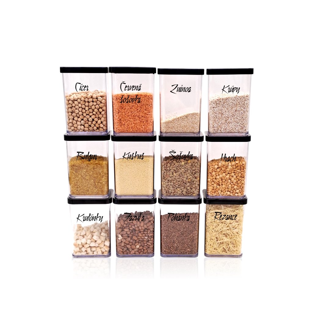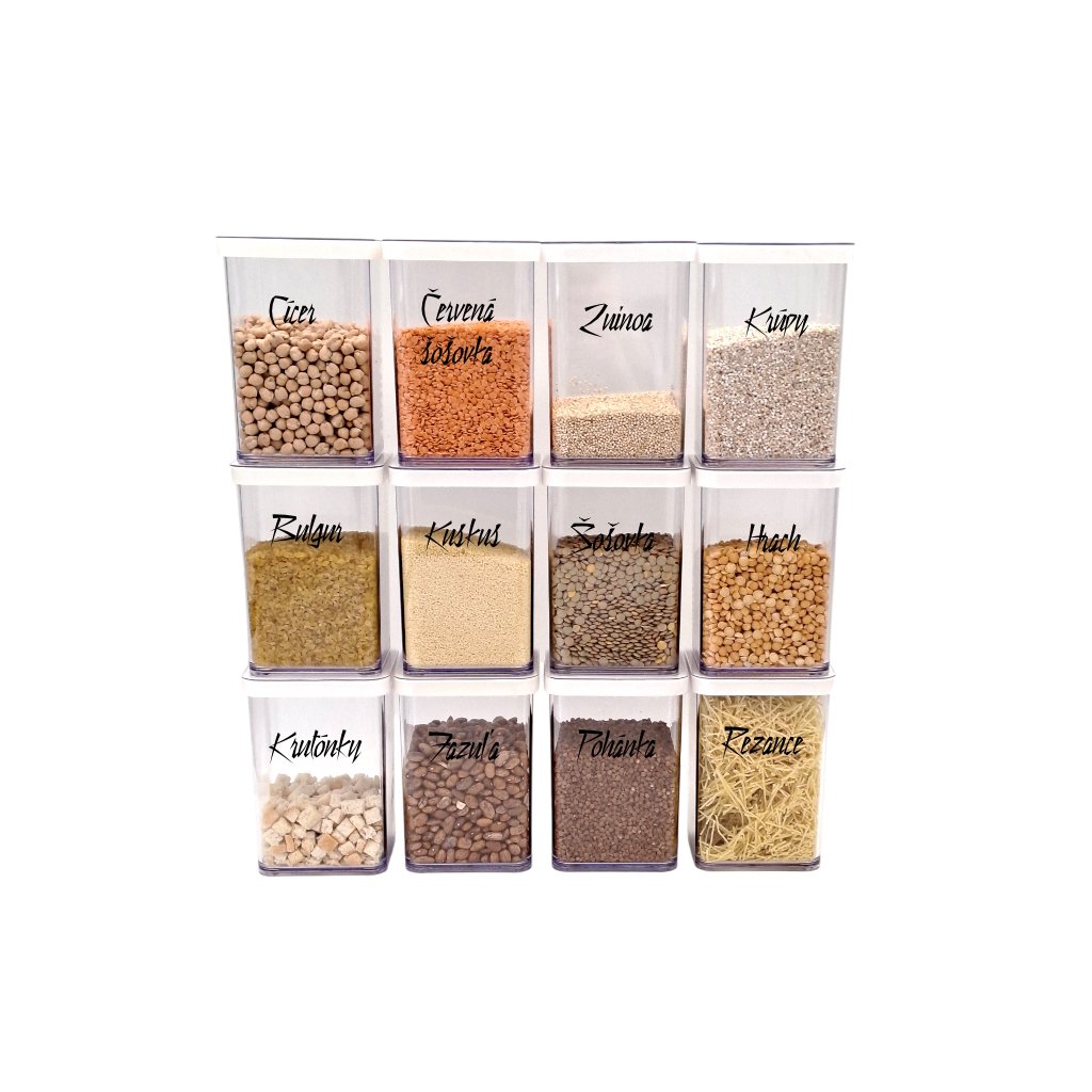 Vďaka štítkom budete mať všetky dózy a nádoby prehľadne označené, čo uľahčuje organizáciu a vyhľadávanie. Už žiadne hľadanie toho, čo sa skrýva vnútri. Každý obsah bude jasne označený a ľahko dostupný.