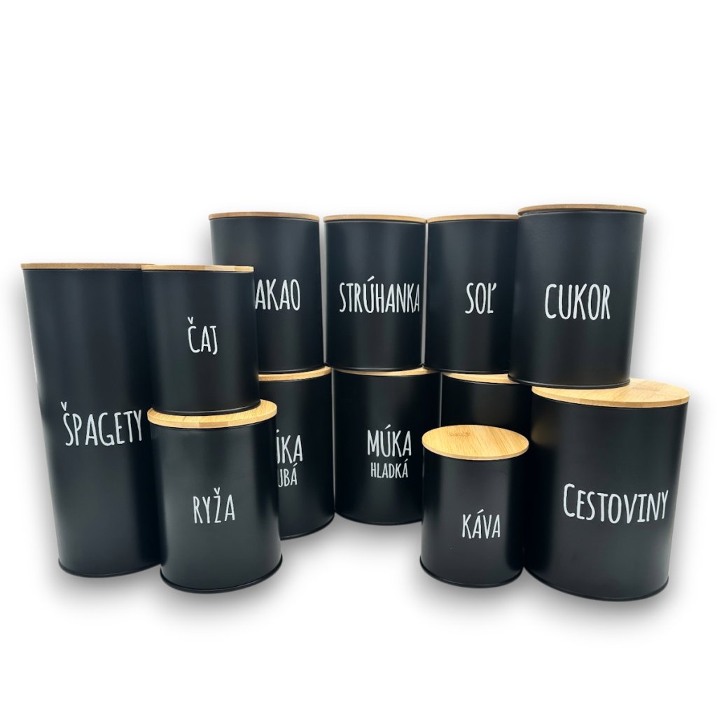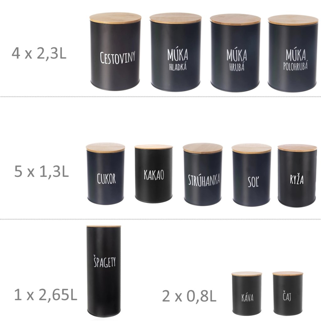 - 1,3 l: Strúhanka, Cukor, Soľ, Kakao, Ryža (⌀11 cm, výška 15,5 cm)