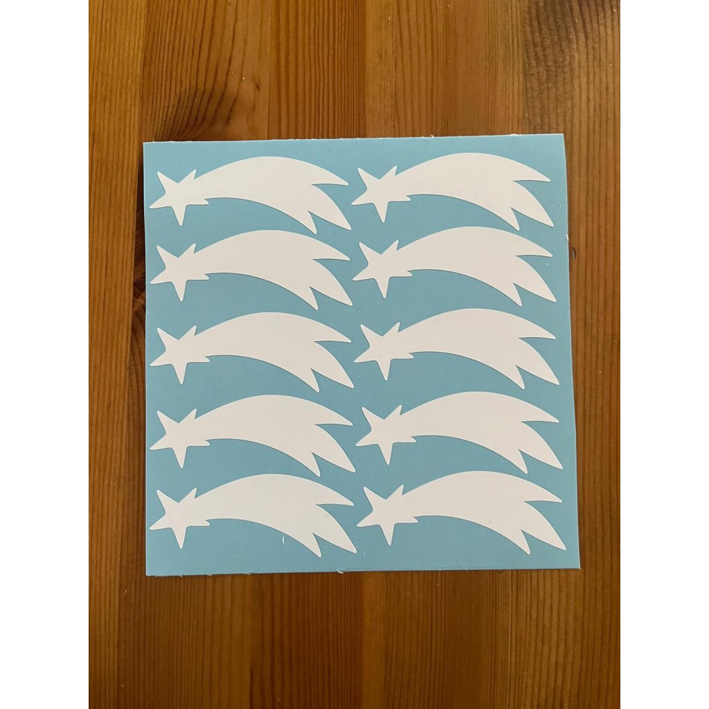 Krásne kométy, ktoré môžete použiť ako menovku na darček, na očíslovanie adventného kalendára alebo len ako dekoráciu. Sú vyrobené z kvalitnej vinylovej fólie, takže budú držať na každom materiáli v interiéri aj exteriéri.