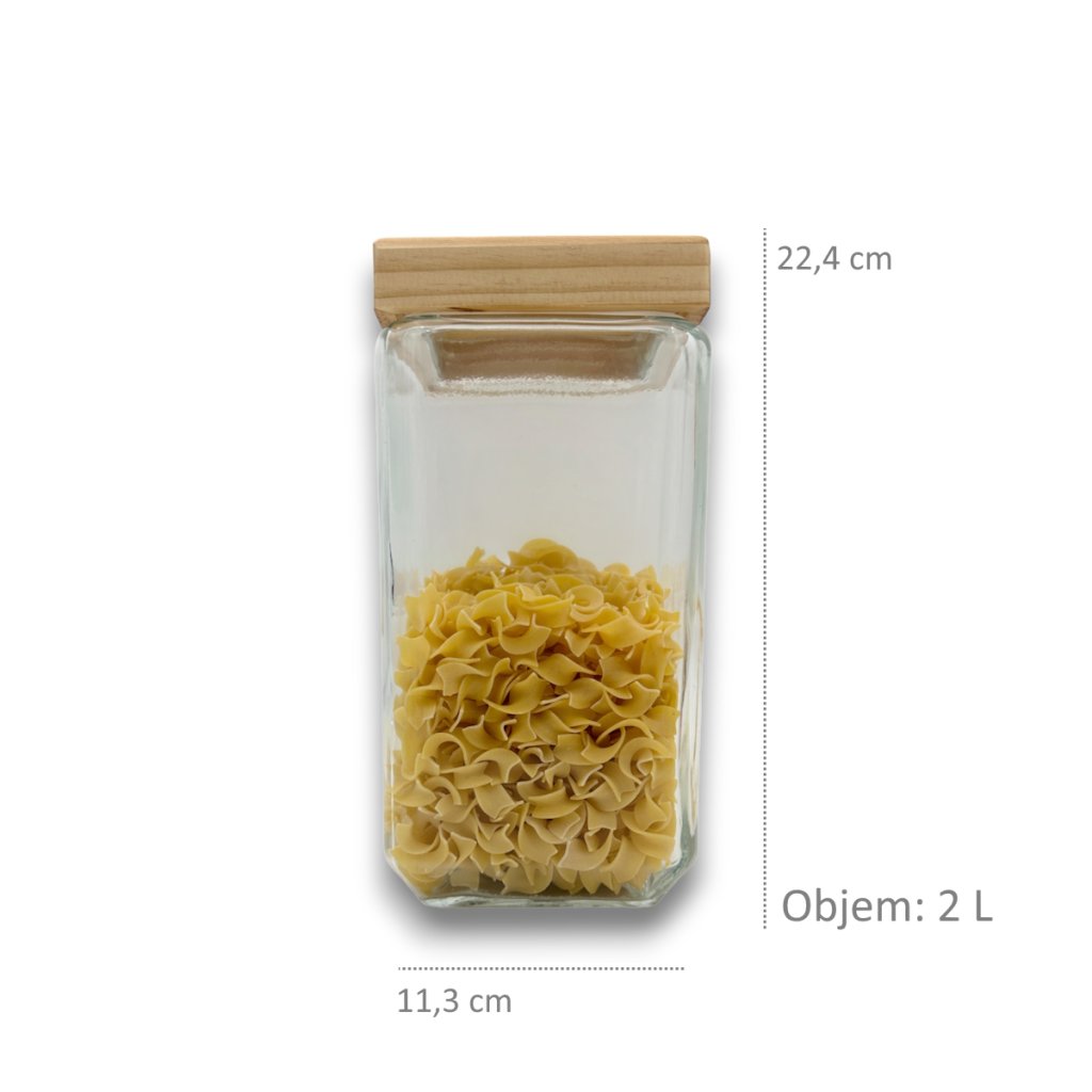 Sklenená bytelná dóza hranatá s dreveným vekom, 2l KWADR