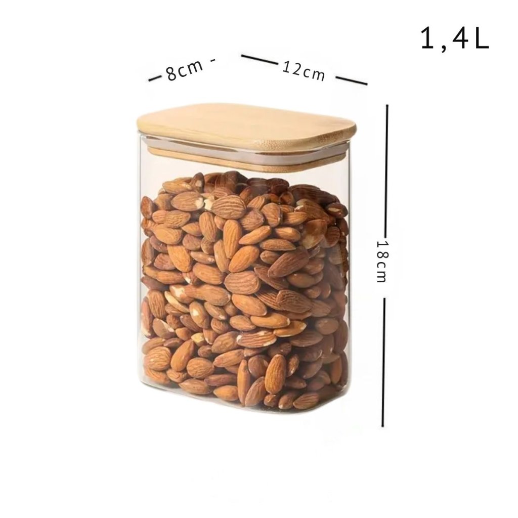 Sklenená dóza obdĺžniková s bambusovým vekom, 1,4l VIVO