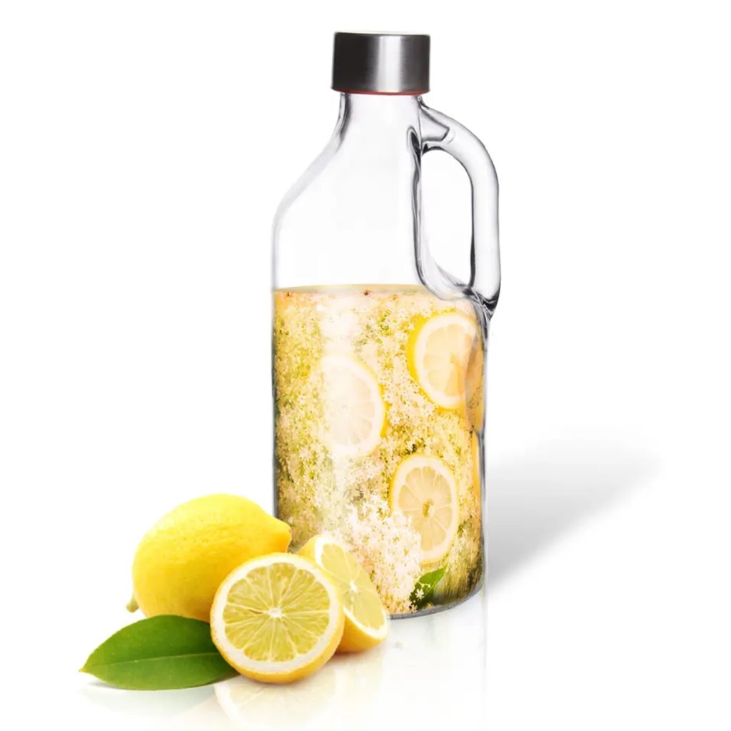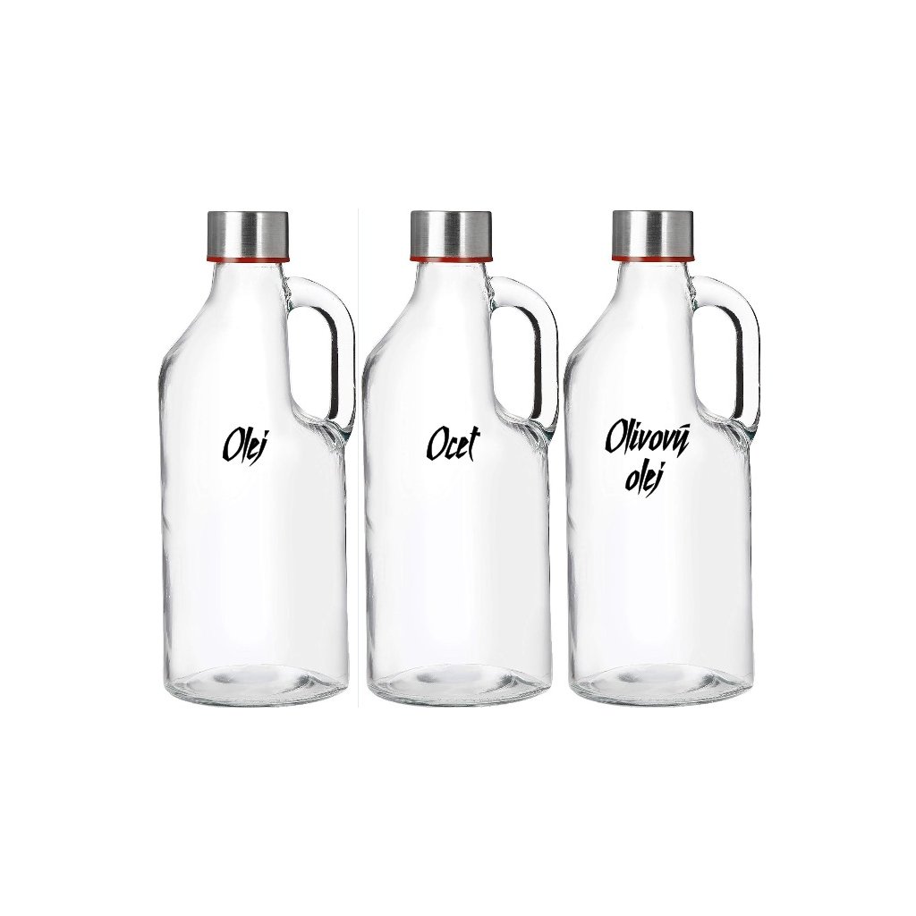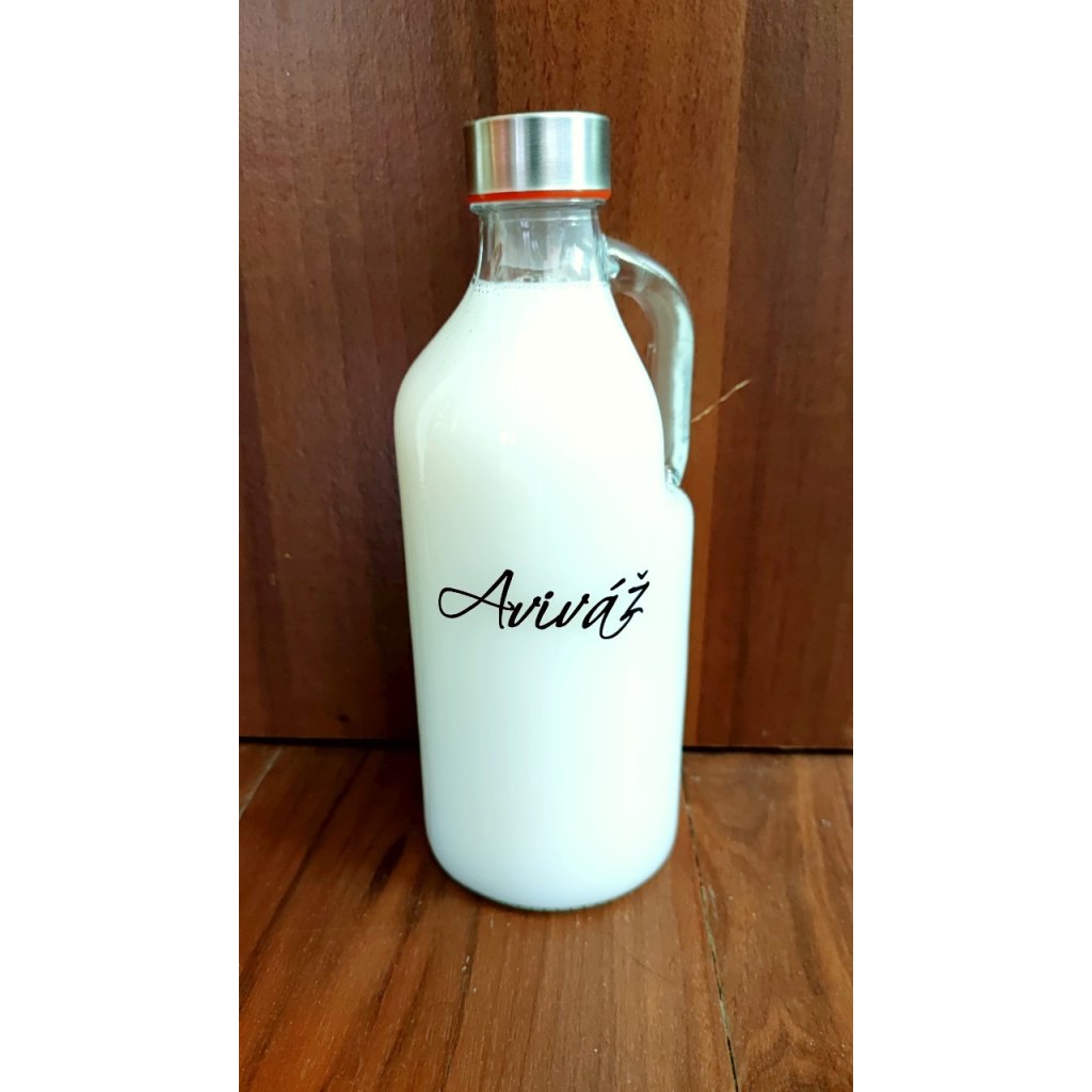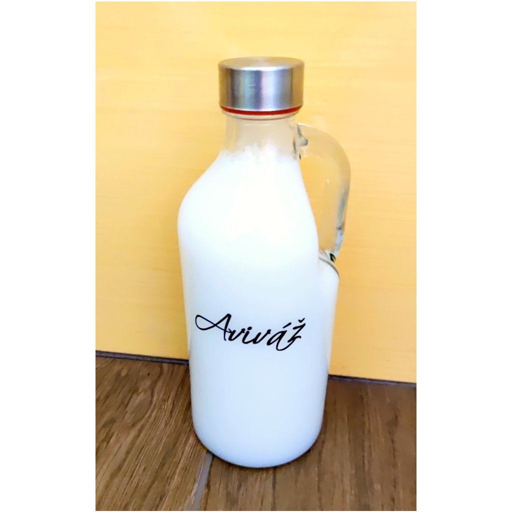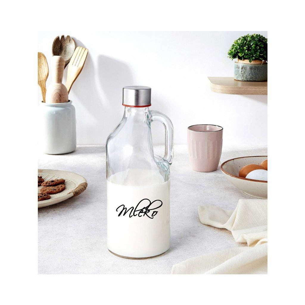 Sklenená fľaša na mlieko / olej / aviváž, s rúčkou a uzáverom so závitom, 1,15 l
