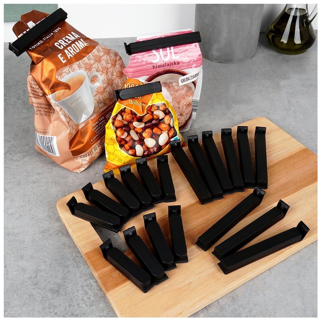 Spony na vrecká, štipec na uzavretie vreciek, 22ks, čierna