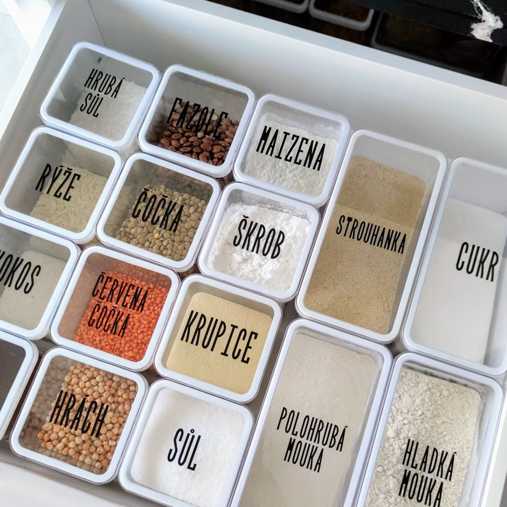 Štítky sú vyrábané v maximálnej šírke 6,5 cm a ladili sme ich predovšetkým pre naše vynikajúce potravinové dózy Rotho Loft White a Rotho Loft Black.Použiť ich však môžete na čokoľvek. Vinyl drží na všetkých materiáloch a výrobca uvádza životnosť 6 – 7 rokov.
