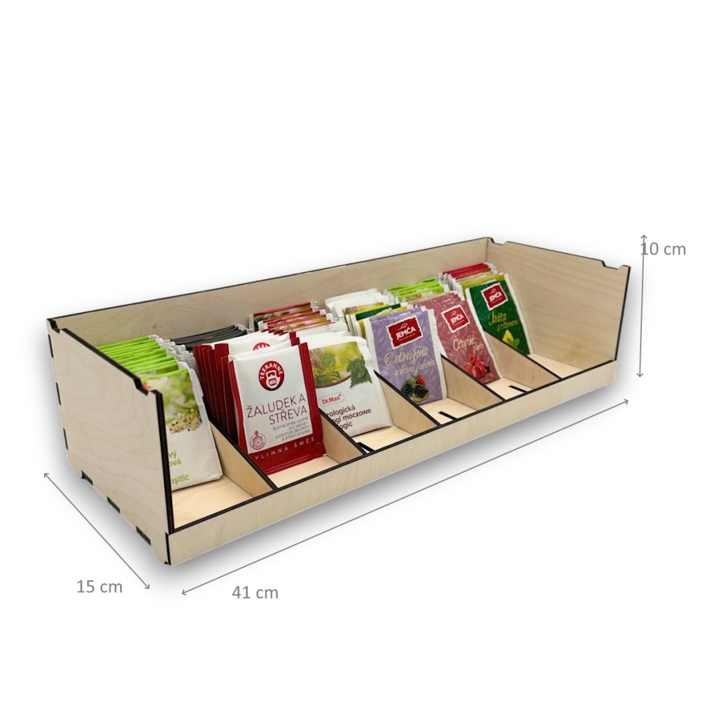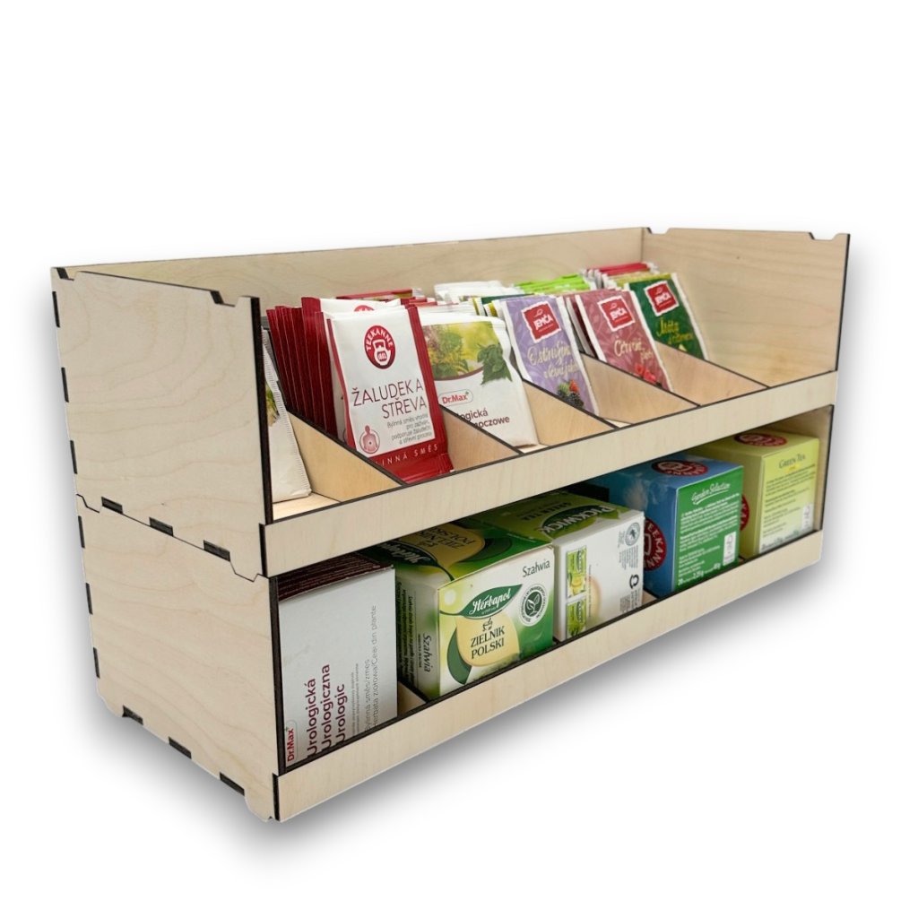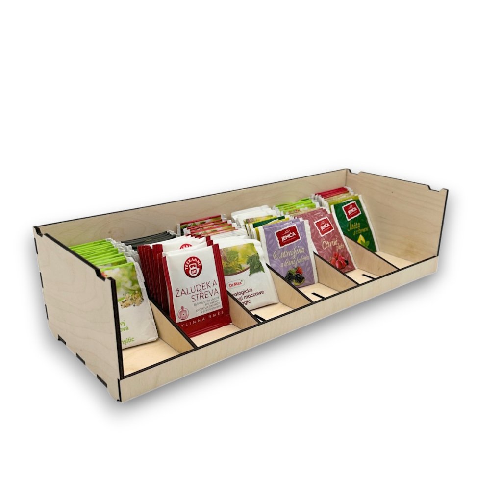 🛒 Kúpte si tento drevený organizér a majte svoje čaje vždy krásne usporiadané – prehľadne, štýlovo a po ruke!