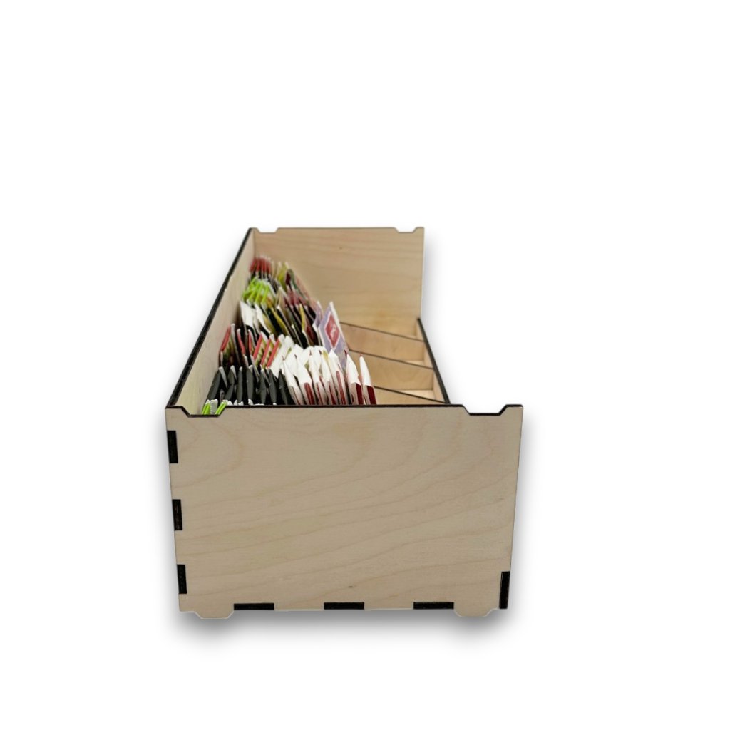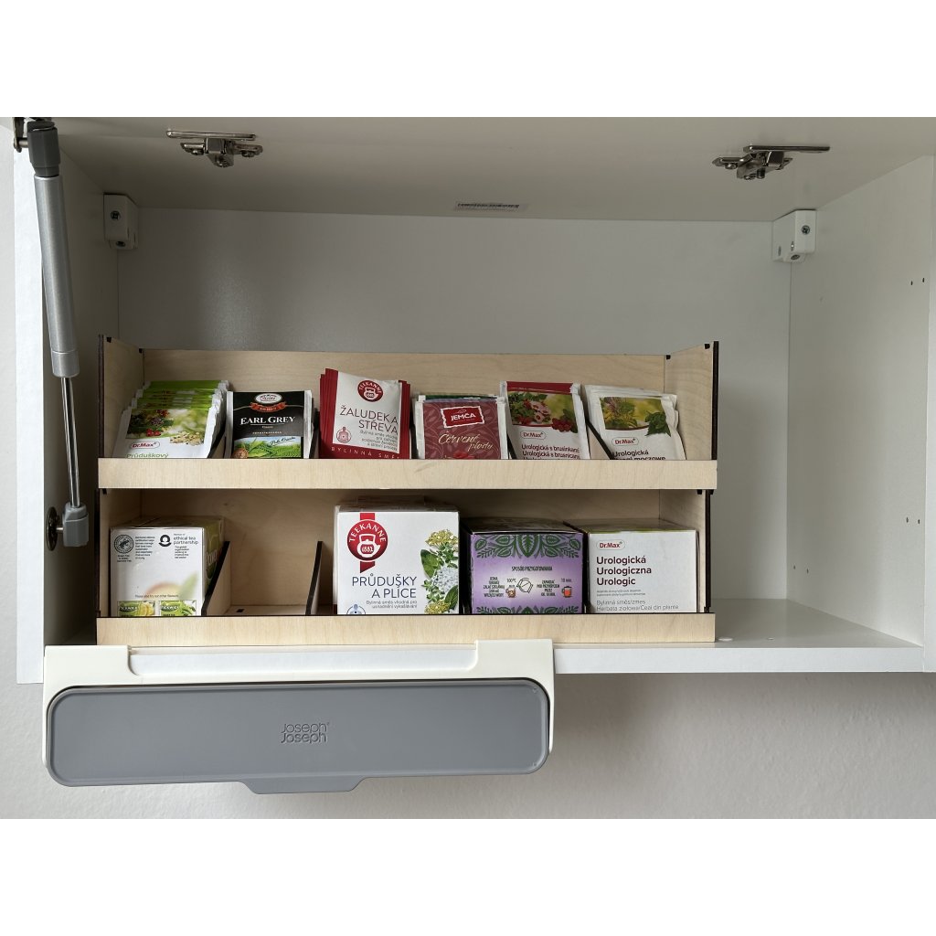 Usporiadajte si svoju čajovú kolekciu štýlovo a prehľadne! Tento drevený organizér je ideálny pre každého milovníka čajov, ktorý chce mať svoje vrecká aj krabičky vždy po ruke a krásne usporiadané.