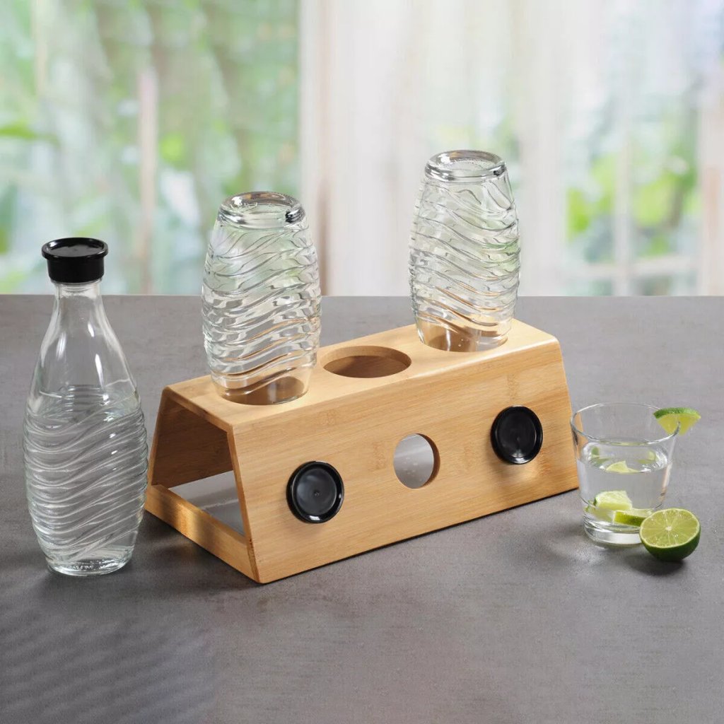 Stojan na fľaše, odkvapkávač bambusový - SODASTREAM