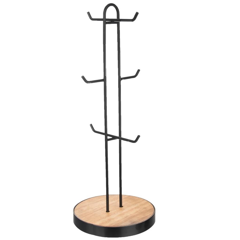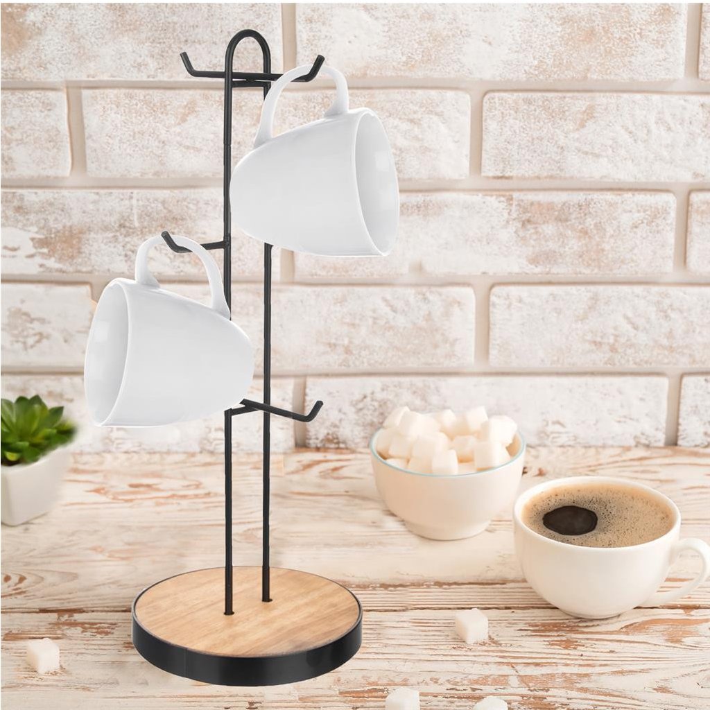 Už žiadne hrnčeky natlačené v poličke alebo rozhádzané po linke! Tento elegantný kovový stojan s drevenou základňou prehľadne usporiada až 6 hrnčekov a dodá vašej kuchyni útulný šmrnc.