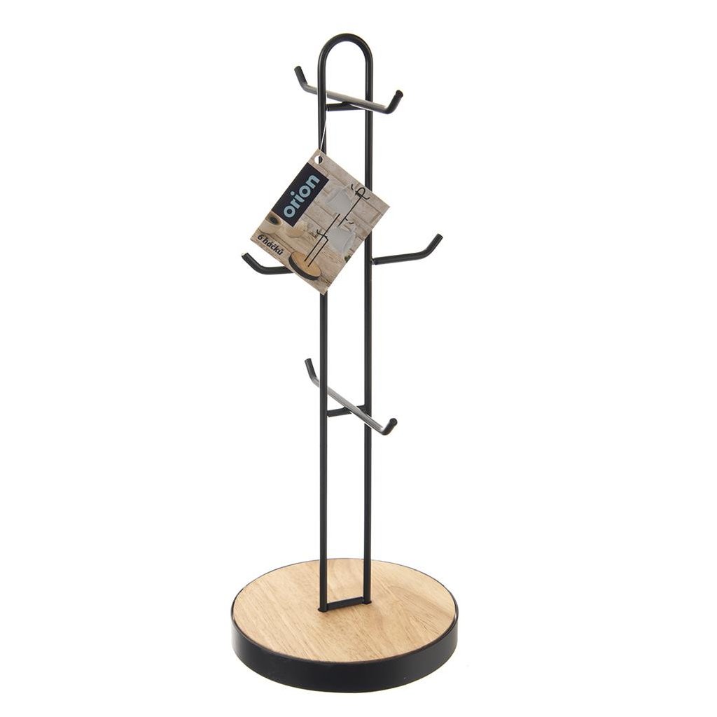 Stojan na hrnčeky, drevený podstavec, háčiky, čierny kov RADKA