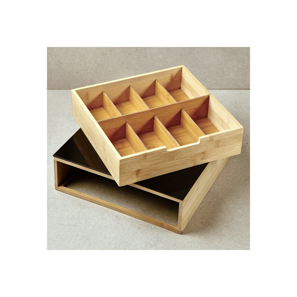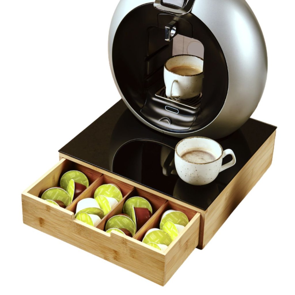 ✔ Zásuvka s 8 priehradkami – ideálne na kapsule, čaje, vrecká, lyžičky, kancelárske potreby