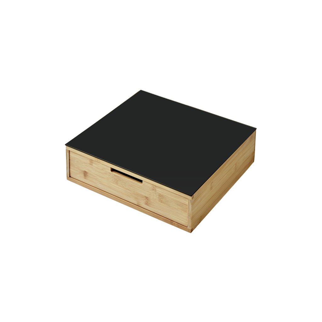 ✔ Dizajnová kombinácia – prírodný bambus a čierne sklo v elegantnej rovnováhe